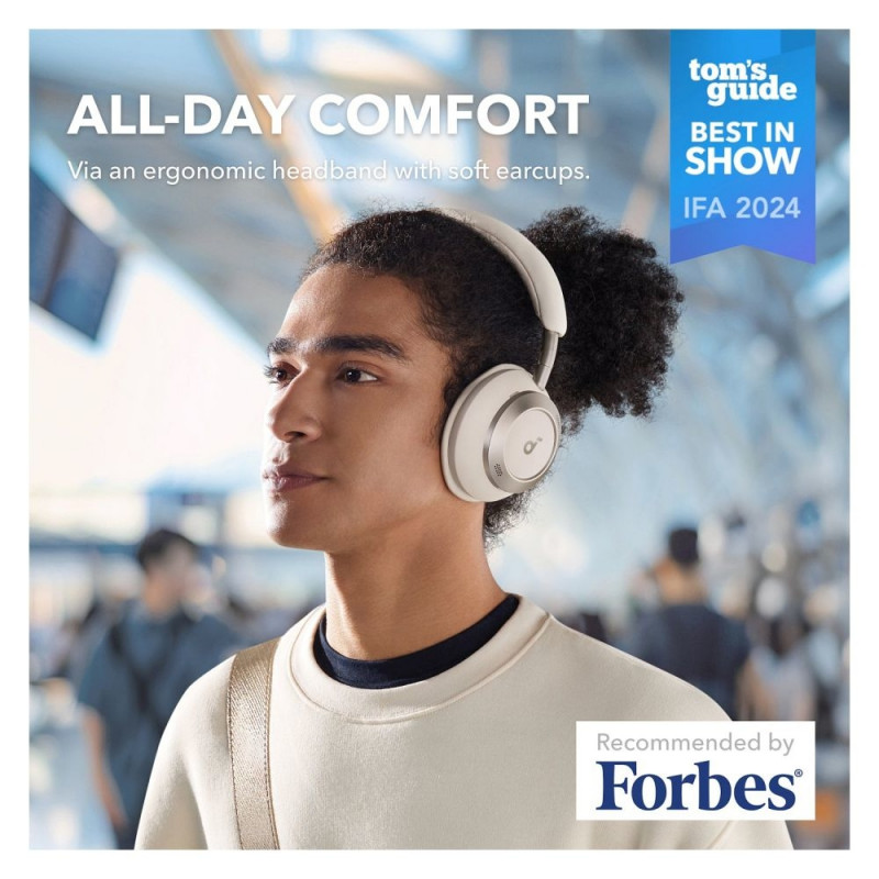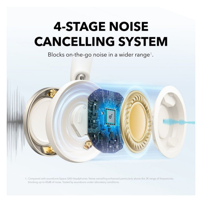 "Anker Soundcore Space One Pro. Produkttyp: Kopfhörer. Übertragungstechnik: Verkabelt & Kabellos, Bluetooth. Empfohlene Nutzung: Anrufe/Musik. Gewicht: 286,2 g. Produktfarbe: Weiß"