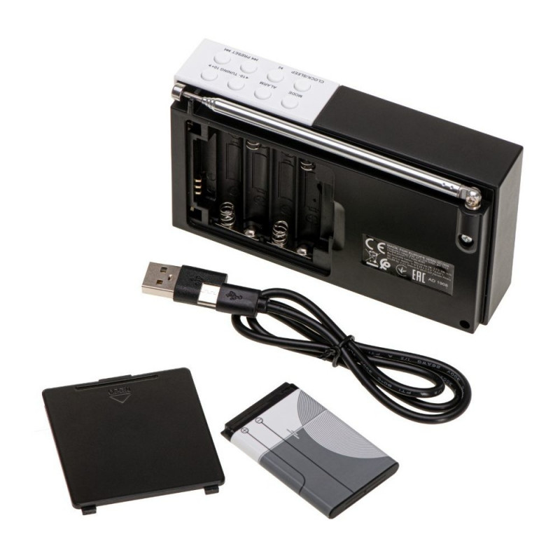 | Other features | AD 1908 PLL AM/FM Digital Radio Advanced PLL tuning Wide FM range: 87.5-108 MHz Bluetooth 5.0 connectivity USB/SD playback Multiple preset stations: Save up to 20 FM stations Clear LCD display Telescopic antenna Functions: clock, alarm, sno |