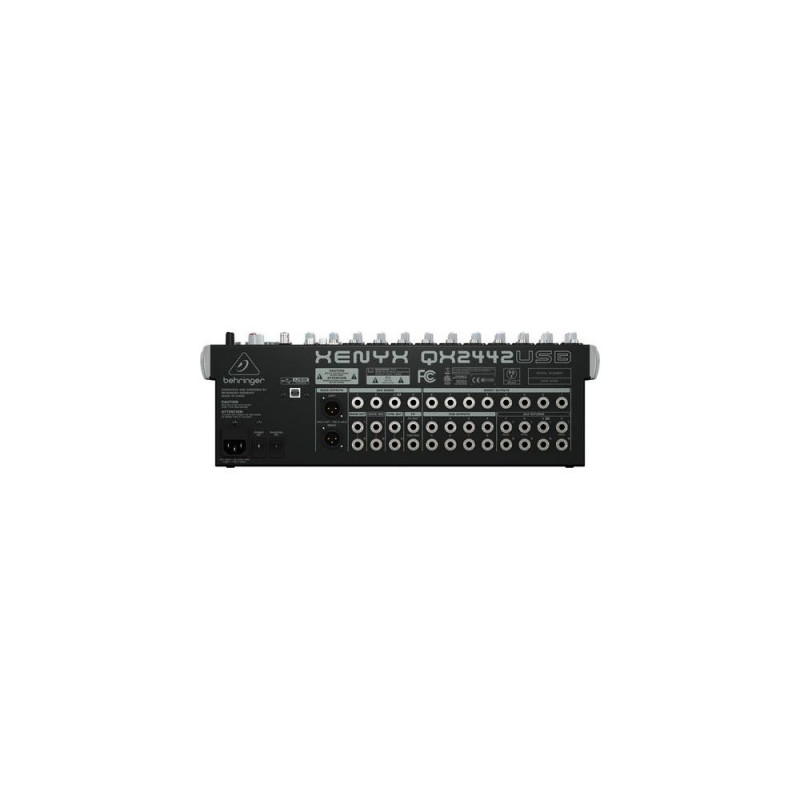 - Premium ultra-low noise, high headroom mixer<br>- 10 state-of-the-art, phantom-powered XENYX Mic Preamps comparable to stand-alone boutique preamps<br>- 8 studio-grade compressors with super-easy "one-knob" functionality and control LED for professional vocal and instrumental sound<br>- Ultra-high quality KLARK TEKNIK FX processor with LCD display, dual-parameters, Tap function and storable user parameter settings<br>- "Wireless-ready" for high-quality BEHRINGER digital wireless system (not included)<br>- Built-in stereo USB/Audio Interface to connect directly to your computer. Free audio recording, editing and podcasting software plus 150 instrument/effect plug-ins downloadable at behringer.com<br>- Neo-classic "British" 3-band EQs with semi-parametric mid band for warm and musical sound<br>- Channel inserts and direct outputs on each mono channel plus main mix inserts for flexible connection of outboard equipment<br>- 4 aux sends per channel: 2 pre/post fader switchable for monitoring/FX applications, 2 post fader (for internal FX or as external send)<br>- Clip LEDs, mute, main mix and subgroup routing switches, solo and PFL functions on all channels<br>- 4 subgroups with separate outputs for added routing flexibility; 4 multi-functional stereo aux returns with flexible routing<br>- Control room/phones outputs with multi-input source matrix; rec inputs assignable to main mix or control room/phones outputs<br>- Long-wearing 60-mm logarithmic-taper faders and sealed rotary controls<br>- "Planet Earth" switching power supply for maximum flexibility (100 - 240 V~), noise-free audio, superior transient response plus low power consumption for energy saving<br>- High-quality components and exceptionally rugged construction ensure long life<br>- Conceived and designed by BEHRINGER Germany<br><br>The feature-packed XENYX QX2442USB mixer allows you to effortlessly achieve premium-quality sound thanks to its 10 onboard studio-grade XENYX Mic Preamps and ultra-musical “British” channel EQs – with a semi-parametric mid band for warm and musical sound. And our easy-to-use “one-knob” compressors provide total dynamic control for the ultimate in punch and clarity, while respecting all the power and emotion you pack into every note. Add to this our KLARK TEKNIK FX processor with 32 studio-grade presets with dual addressable parameters, Tap function and storable user parameter settings – and the QX2442USB becomes an incredibly versatile mixer for your live performances.<br><br>But XENYX QX2442USB isn’t just designed to handle your live gigs; they also provide the state-of-the-art tools you need to make stunning, professional- quality recordings. Along with their built-in USB/audio interfaces, the XENYX QX2442USB comes with all the recording and editing software needed to turn your computer system into a complete, high-performance home recording studio.<br><br><b>Sonically Superior Mic Preamps</b><br>The XENYX QX2442USB gets its name from our legendary, high headroom XENYX mic preamps, which have been praised by audio engineers all over the world. These state-of- the-art mic pres represent a major step in the evolution of audio technology – and they can easily hold their own, even when compared to the most expensive stand-alone mic preamps. XENYX preamps offer a staggering 130 dB of dynamic range, with a bandwidth that extends from below 10 Hz to well above 200 kHz. Armed with these outstanding mic preamps, the XENYX QX2442USB provides such transparent, crystal-clear performance you just might think someone upgraded your mics while you weren’t looking.<br><br><b>Studio-Quality Compressor - Stairway to Heaven</b><br>Our studio-grade compressor is based on classic and famous studio equipment from the 70’s. This totally transparent and musical compressor design allows your full dynamic range to shine through until your signal reaches the compression threshold, which is indicated by the highly visible status LED. The compressor increases sustain and gently smoothens out signal peaks, which is especially handy when you’re laying down the funk, à la slap and pop – or hammering home your most-aggressive metal lines. The resulting output level lets you unleash powerful and impact-laden bass lines, while still sitting right where you need to be in the mix!<br><br><b>Sublimely Musical British EQ</b><br>The British consoles of the 1960s and ‘70s changed the sound of rock and roll – without them the British Invasion might not have happened. Those legendary mixing desks soon became the envy of engineers and producers all over the world. The channel EQ on our XENYX mixers is based on that very same circuitry, allowing you to imbue signals with incredible warmth and detailed musical character. Even when applied generously, these equalizers exhibit sweet forgiveness and superb audio quality.<br><br><b>KLARK TEKNIK - The Reverb that Made History</b><br>KLARK TEKNIK is recognized worldwide as one of the most prestigious British audio companies, with a 40-year pedigree and even a TEC Lifetime Achievement Award to back it up. The Company has designed and manufactured products for world-class artists, and their legendary DN780 reverb processor is considered by leading audio engineers around the world as the industry standard. Check out their website to learn more about KLARK TEKNIK’s legendary heritage.<br><br>BEHRINGER is proud to incorporate custom-engineered KLARK TEKNIK effects into their products. Featuring 100 world-class presets to choose from including reverb, chorus, flange, delay, pitch shift and many other amazing effects, KLARK TEKNIK created the 24-bit, studio-grade effects engine for BEHRINGER – to give your performance that truly professional finishing touch.<br><br><b>Own the Stage with Digital Wireless</b><br>Get wireless-ready with the built-in, dedicated connectivity of our ULTRALINK ULM Series wireless microphone system (to be ordered separately). Wireless gives you maxi