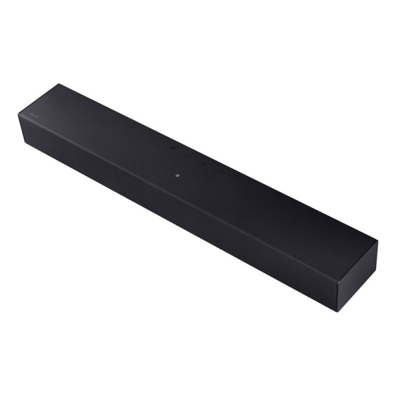 The Samsung HW-B410F/XE soundbar is an audiovisual device designed to enhance the sound experience of any home entertainment system with its 2.0 channel setup, delivering clear and balanced audio through two built-in speakers. It features an elegant and understated design in black, ideal for discreet placement in front of the TV. Its wireless connectivity via Bluetooth 4.2 allows stable and fast streaming from compatible devices such as smartphones or tablets, enabling cable-free music playback and expanding usage options beyond the TV. It also includes an HDMI input, facilitating direct connection to most televisions and improving audio quality by integrating with modern multimedia systems. Among its technical features is a built-in equalizer that lets you adjust the sound to suit different content types and listening preferences, optimizing the audio experience for movies, series, and music alike. The Samsung HW-B410F/XE is a speaker that combines functionality and technical quality for users seeking a simple yet effective solution to improve home audio. This model offers a balanced option within the soundbar range, featuring current technologies and a suitable setup for hassle-free home environments.