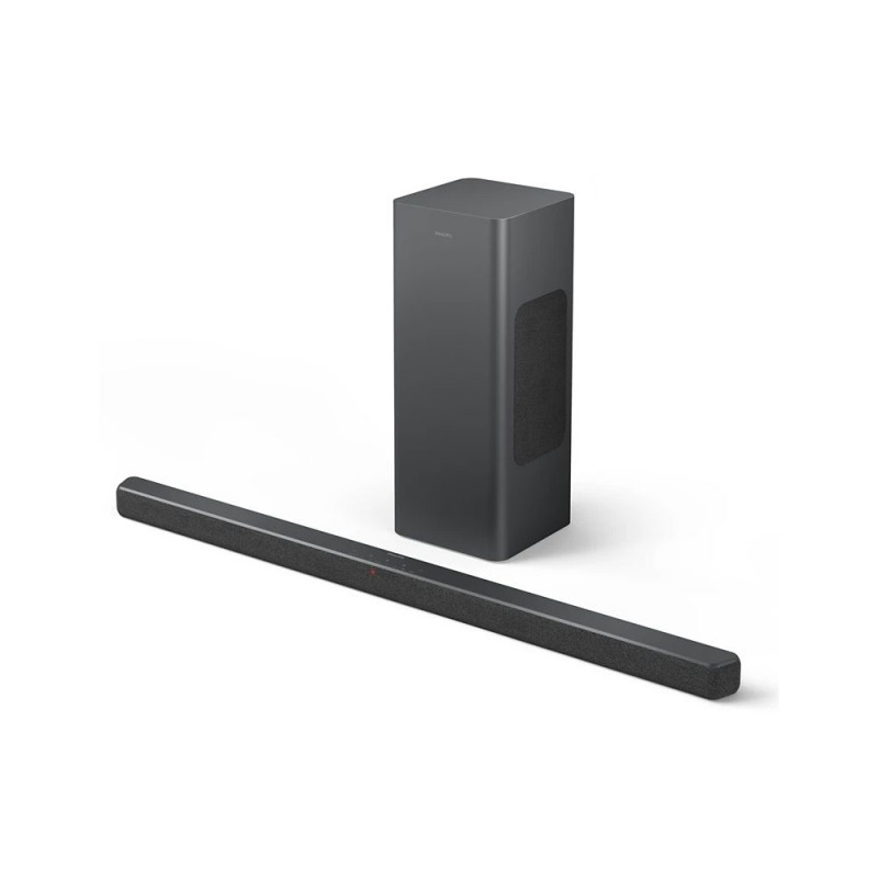 The Philips TAB6309 has a 2.1-channel speaker system with a total power of 120W. it features Bluetooth connectivity for wireless streaming, HDMI ARC for easy connection to a TV and an elegant gray design that fits into any interior. Enjoy impressive sound quality with deep bass and clear dialogue, making it ideal for movies, music and games.
