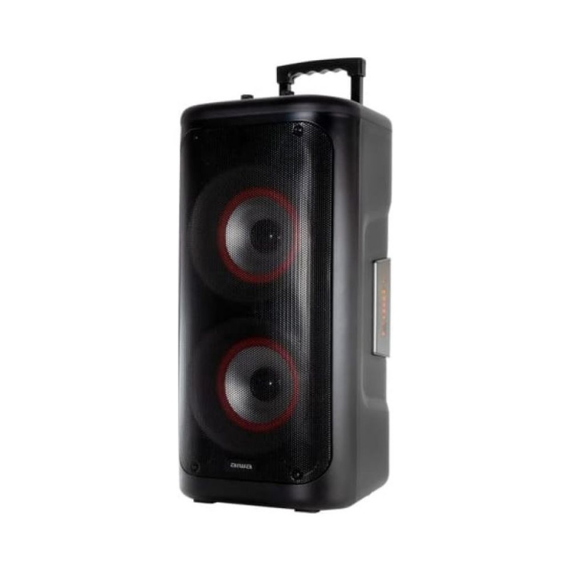 The Aiwa KBTUS-480 portable speaker combines powerful sound and mobility. It features dual 6.5" drivers, HyperBass technology for deep bass, and RGB LED lighting effects. Bluetooth connectivity ensures stable wireless playback, while USB, microSD, AUX, and FM radio provide versatility. The built-in battery allows up to 6 hours of use, and the trolley design with handle and wheels makes transport easy. Perfect for parties, karaoke, and outdoor events.