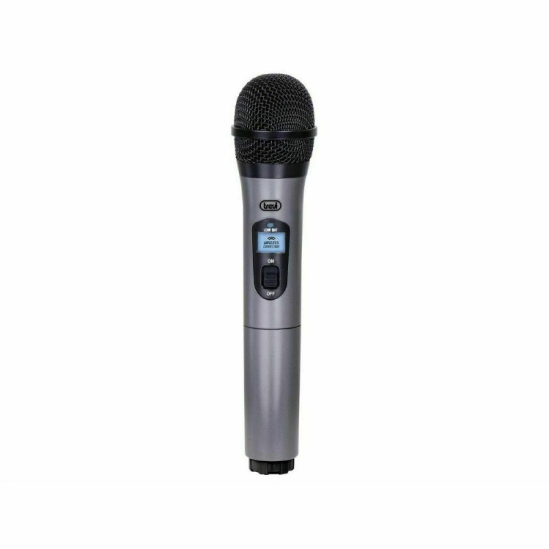 The Trevi EM 401 wireless microphone is a device designed to deliver clear and efficient audio transmission in various settings, ideal for presentations, events, or live performances. With a unidirectional design, this microphone reduces ambient noise by focusing sound capture on the main source for greater clarity. It features Bluetooth connectivity, enabling cable-free use and freedom of movement with an effective range of up to 20 meters, allowing the user to move comfortably without signal loss. Connection is made via a 6.3 mm connector, standard in professional audio systems. It operates on 2 AAA batteries, providing the necessary power for operation, and has compact dimensions of 5.5 x 5.5 x 24 cm and a lightweight of 220 grams, making it easy and comfortable to handle during extended use. The grey and silver finish contributes to a sober and professional design, suitable for any stage or room. Released in 2017, this model is well-rated by users, with an average score of 3.8 out of 5 based on 46 reviews, reflecting solid acceptance in the musical instruments market. The Trevi EM 401 microphone combines wireless functionality with sound quality, positioning itself as a reliable choice for those seeking a practical and efficient device without sacrificing good audio quality.