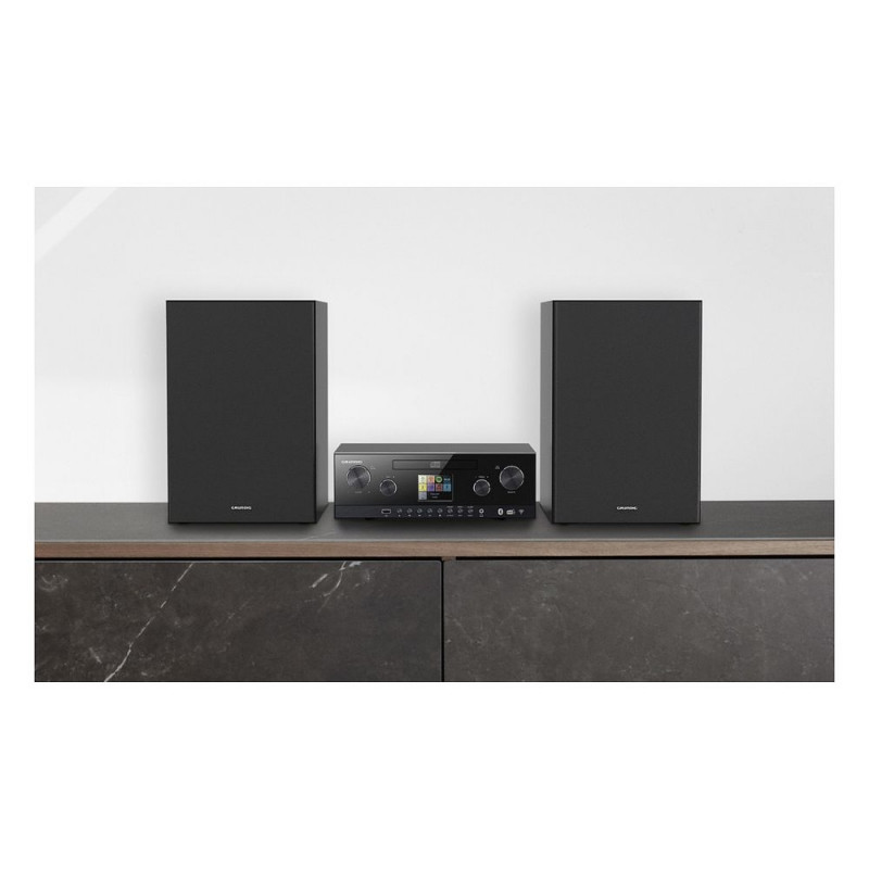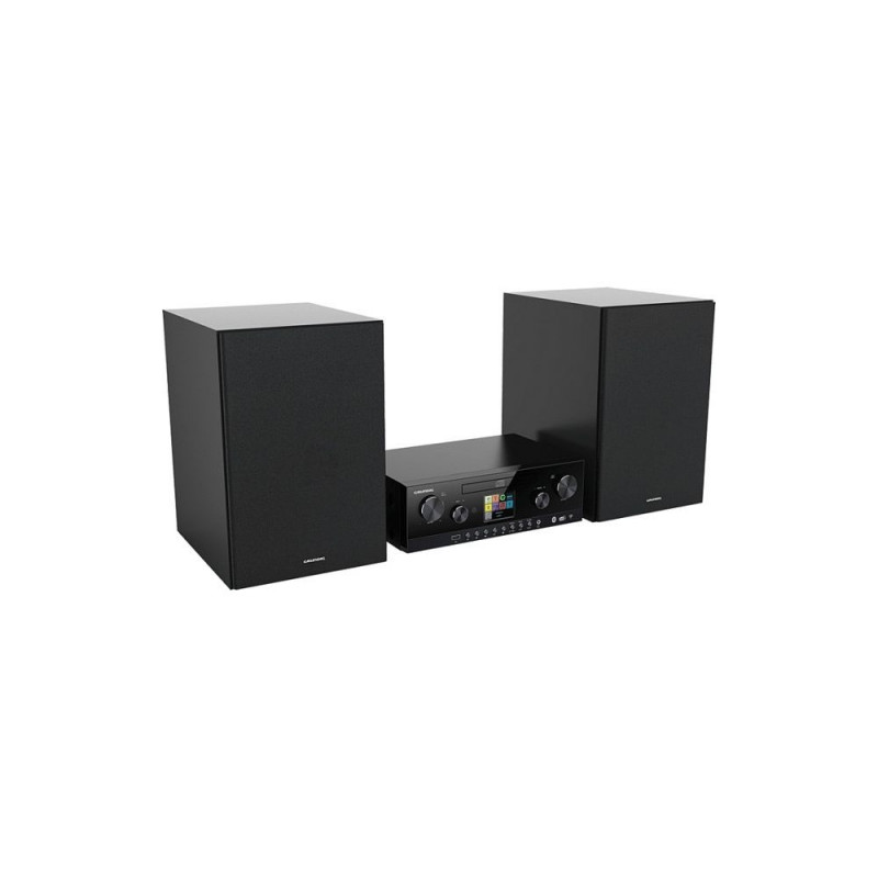 "Grundig CMS 5000 BT. Typ: Heim-Audio-Mikrosystem, Produktfarbe: Schwarz, Lademechanismus: Vorderseite. RMS-Leistung: 100 W, Lautsprechertyp: 3-Wege. Unterstützte Bänder: DAB+, FM, RDS: PLL, PTY, Internetradio Services unterstützt: Spotify. Bluethooth-Reichweite: 10 m. Kopfhörer-Anschluss: 3,5 mm"
