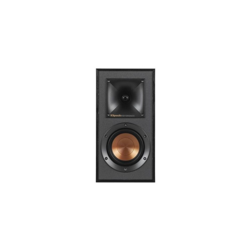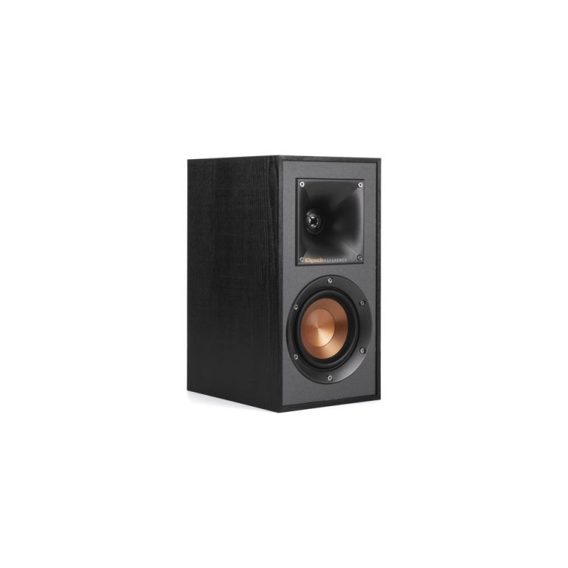 The R-41M bookshelf speakers offer maximum versatility without sacrificing performance from a small, yet elegant audio solution. Designed as main speakers for a compact living space or surround sound to support a Reference speaker system, the R-41M bookshelf speakers are the ideal choice for your home theater system.<br><br><b>TRACTRIX® HORN TECHNOLOGY</b><br>Klipsch exclusive 90x90º Tractrix® horn technology ensures that the R-41M high frequency energy is aimed at the listener and reduces artificial reverb or filtering caused by indirect sound bouncing off of walls. Using this proprietary focused technology gives you the best clarity, dynamics, and detail from your movies and music.<br><br><b>LINEAR TRAVEL SUSPENSION TWEETER<br>WITH KAPTON® SUSPENSION</b><br>Klipsch exclusive Linear Travel Suspension (LTS) aluminum tweeter minimizes distortion for enhanced, detailed performances. Using Kapton®, an extremely light and rigid material, in the tweeter suspension provides high efficiency and improve resolution and detail. LTS tweeters are a hallmark of Klipsch speakers, making them some of the best speakers in the world.<br><br><b>SPUN COPPER IMG WOOFERS</b><br>Injection Molded Graphite (IMG) woofer cones are exceptionally light while being extremely rigid – providing remarkable low frequency response, with minimal cone breakup and distortion. When paired with the Tractrix Horn-Loaded LTS Tweeter, it provides speaker efficiency highest in its class.<br><br><b>SLEEK DESIGN</b><br>Exposed fasteners, low profile magnetic grilles and a scratch-resistant, textured wood grain vinyl give the R-41M bookshelf speakers a polished, modern appearance.<br><br><b>HIGH QUALITY CABINET DESIGN</b><br>Reinforced MDF construction reduces cabinet vibration for less audible coloration and improved sonic accuracy - giving you the ultimate listening experience that's built to last.Klipsch R-41M. Speaker placement: Floor, Tripod. RMS rated power: 50 W, Peak Music Power Output (PMPO): 200 W, Impedance: 8 Ω. Product colour: Black, Housing material: MDF. Connectivity technology: Wired. Width: 146 mm, Depth: 200 mm, Height: 287 mm