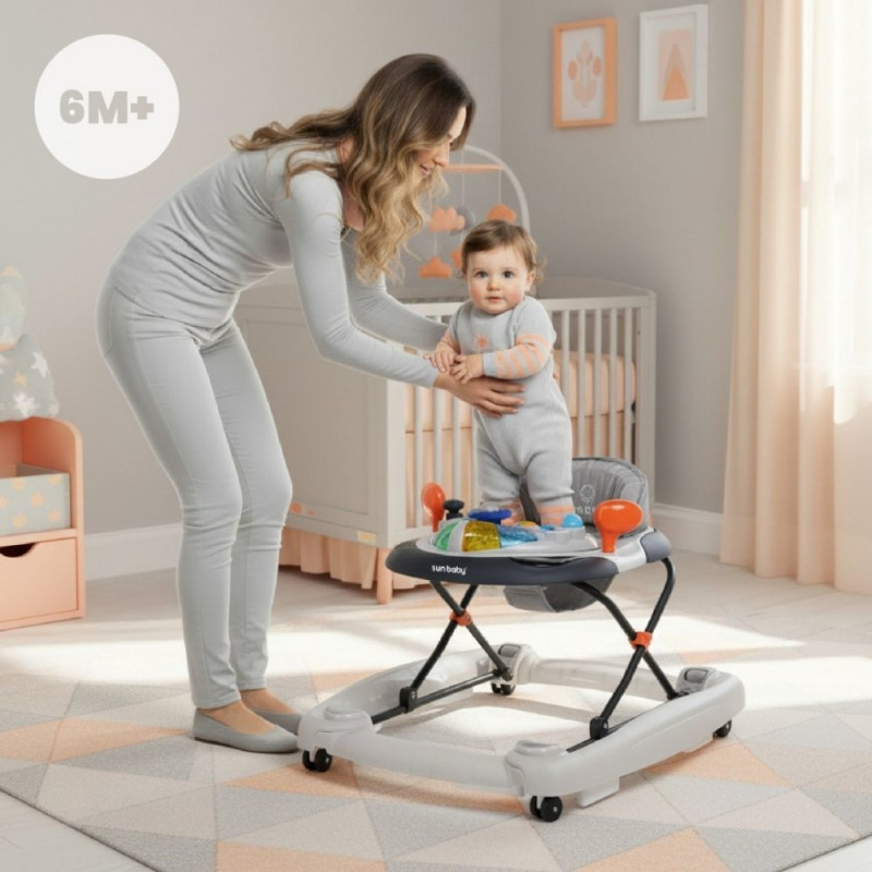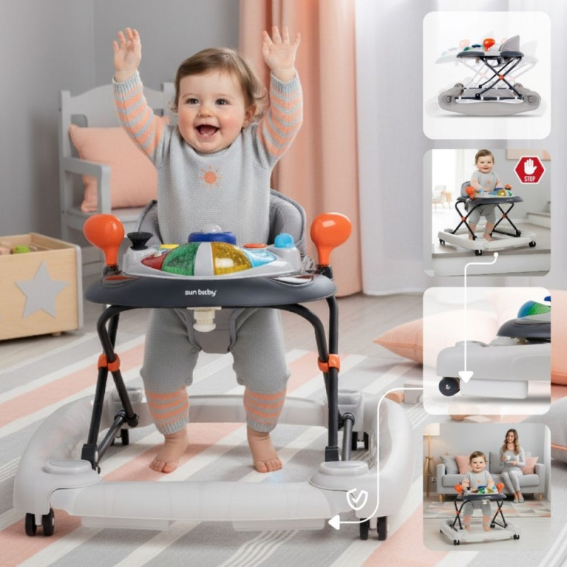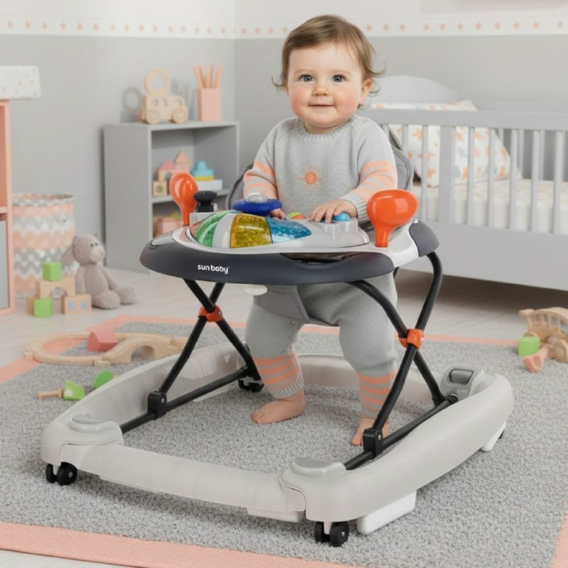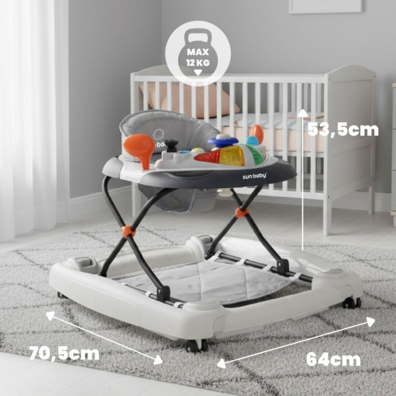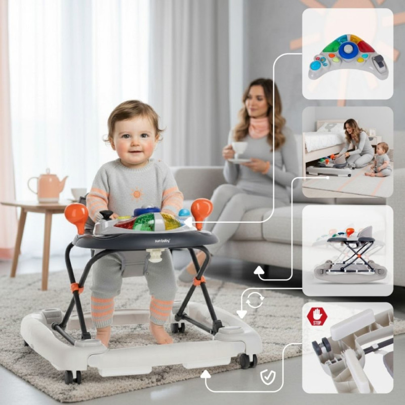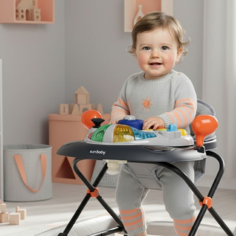 Chodzik, który przyśpiesza i wspiera naukę chodzenia - centrum zabawy i aktywności dla dzieci powyżej 6 miesiąca, do maksymalnej wagi 12 kg. Z chodzikiem odkrywanie otoczenia i nauka chodzenia jest znacznie łatwiejsza. Regulacja wysokości pozwala idealnie dopasować chodzik do wzrostu dziecka, wygodne siedzisko z wysokim oparciem zapewnia odpowiednią pozycję. Rozrywkowy pulpit z przyciskami, światełkami i dźwiękiem zapewni Twojemu dziecku wiele radości i pomoże rozwijać koordynację wzrokowo-ruchową. Utrzymanie chodzika nie przysporzy Ci zmartwień – wystarczy go przetrzeć wilgotna ściereczką, siedzisko można prać ręcznie.