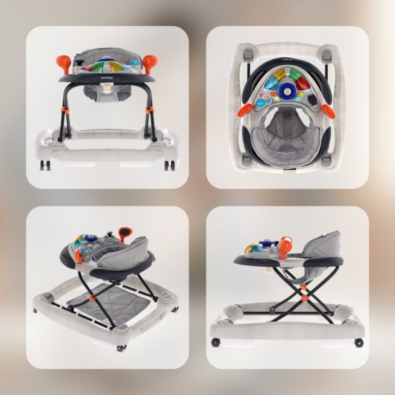 - Trójstopniowa regulacja wysokości pozwala dostosować chodzik do wzrostu dziecka, mechanizm regulacji wysokości z podwójnym zabezpieczeniem