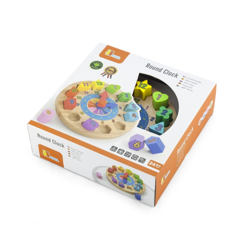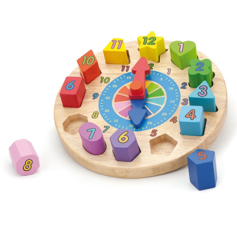 Round Clock * This toy is made of quality rubber wood including 12 different geometric blocks in 12 different colors. * Besides of learning about clock and time, it is also a puzzle toy for learning about geometric shapes. * Great for countingWarning: Last items in stock!