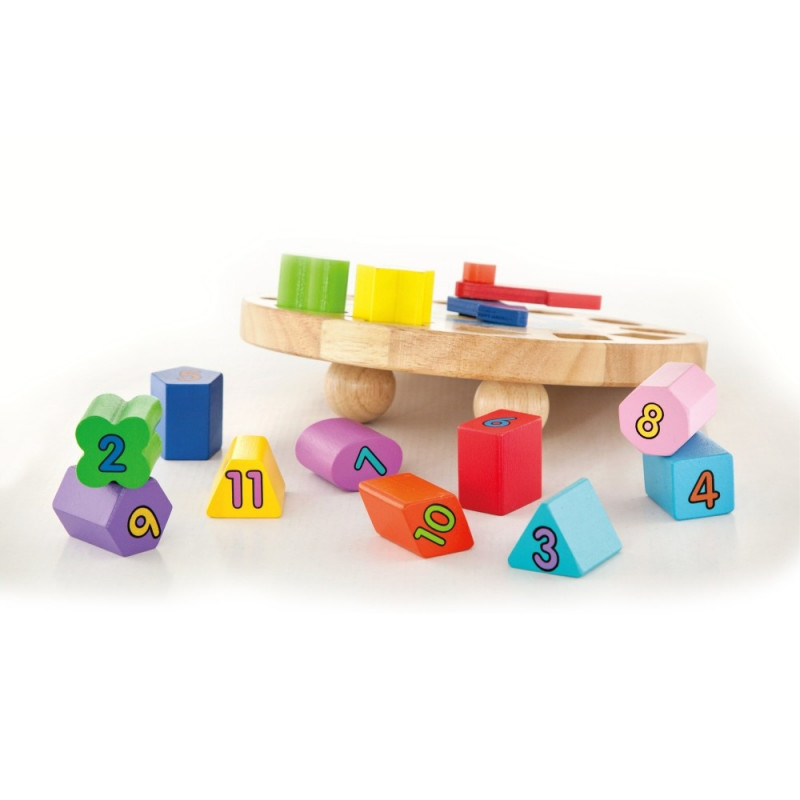 * This toy is made of quality rubber wood including 12 different geometric blocks in 12 different colors.