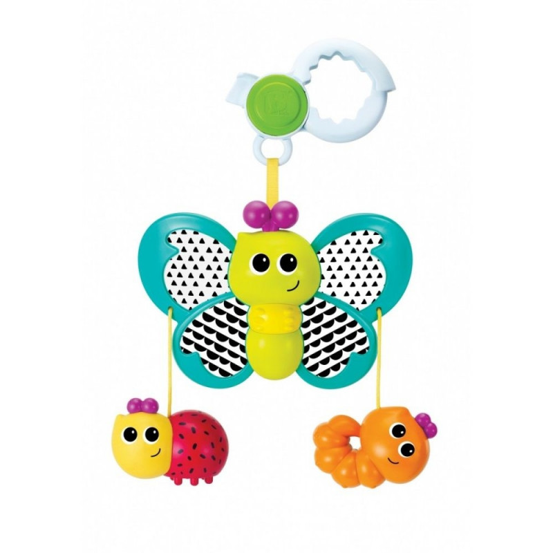 Kolorowa zawieszka motylek z klipsem, dzięki któremu można ją zawiesić na wózek, fotelik samochodowy czy bujaczek. Ma dodatkowe 2 zawieszki biedronkę i robaczka, które dostarczą jeszcze więcej zabawy! Zawieszka umili dziecku każdy spacer i podróż.