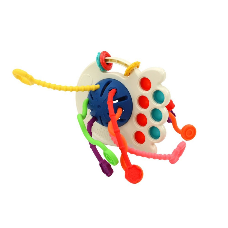 Zabawka posiada 6 lin o różnych kolorach i fakturach, które nie tylko zachęcają do zabawy, ale także rozwijają zmysł dotyku i koordynację ruchową. Niektóre z lin są łatwe do ciągnięcia, inne wymagają większego wysiłku, co stanowi dodatkowe wyzwanie dla małych paluszków.