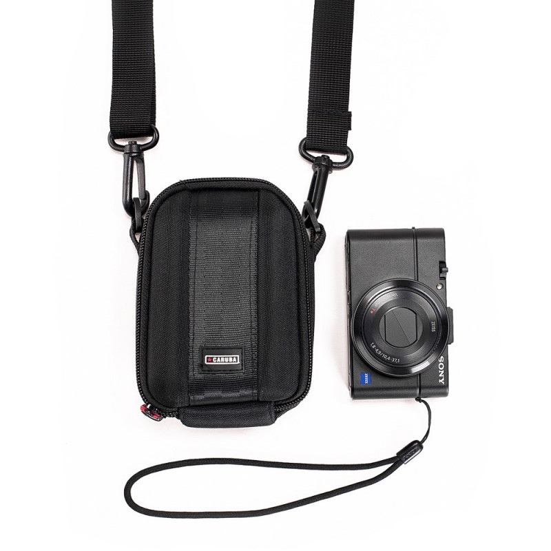 There is space for memory cards, batteries and other small accessories inside the hardcase. The easily adjustable shoulder strap is easy to detach from the bag.