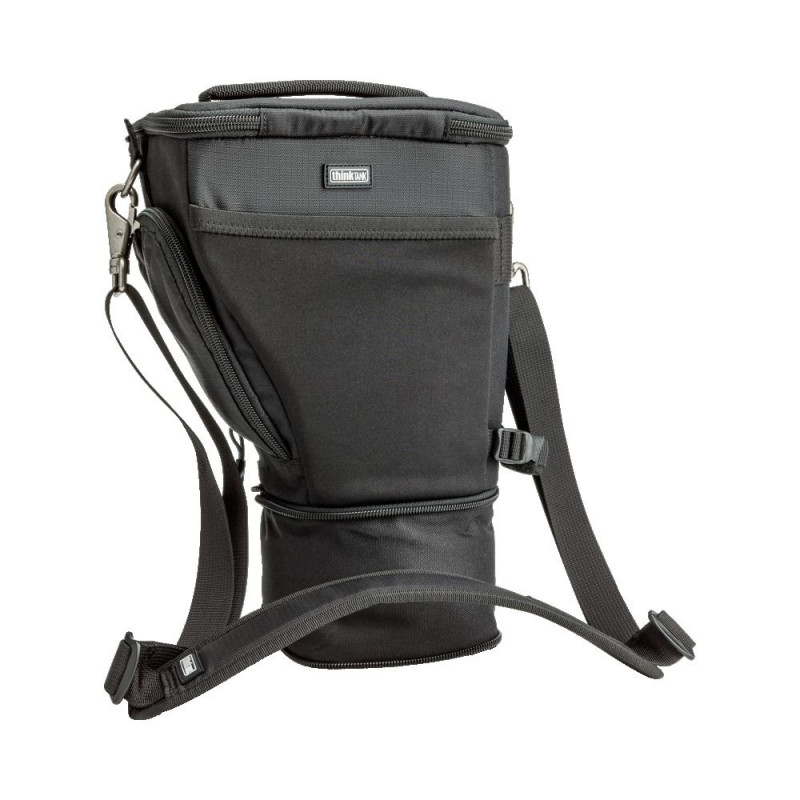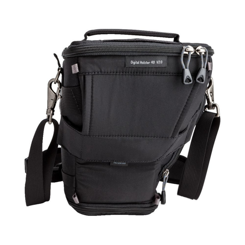 Unique holster developed for gripped DSLR with a 24-70mm f/2.8 lens hood in shooting positionWarning: Last items in stock!