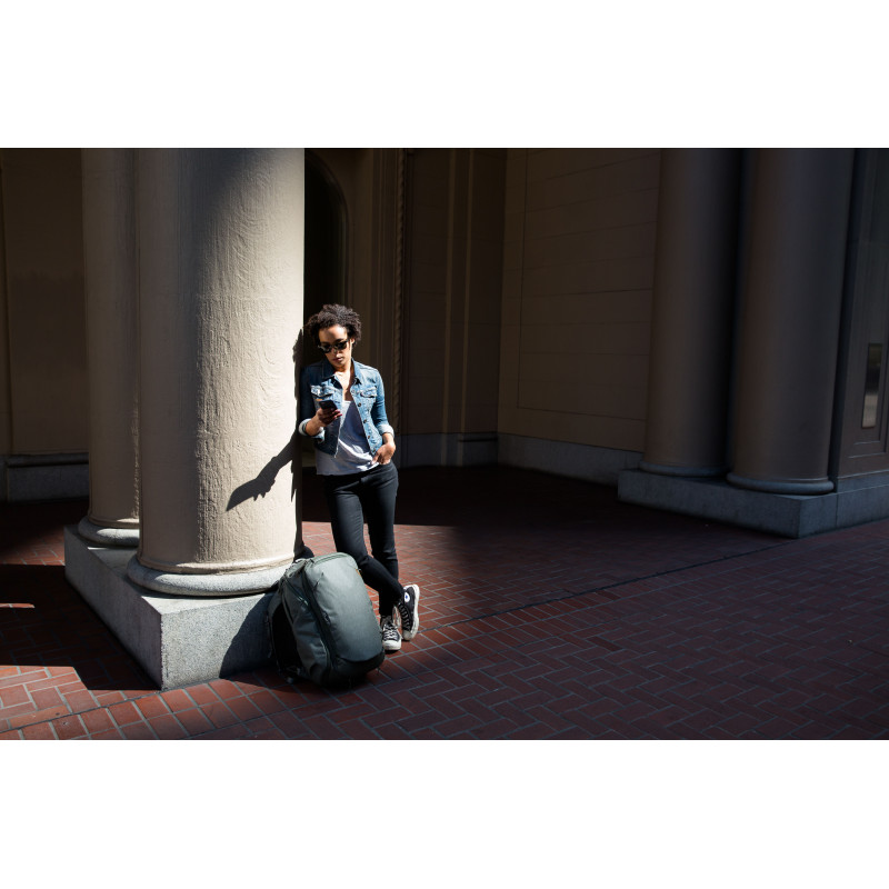 Meets international carry-on size requirements, but expands to be a 45L gear-hauler and collapses to be a 35L day bag, making it unmatched for 1-bag travel. Quick-access pockets for keys, glasses, passport, etc. Hugely expandable side pockets for water bottles, tripods, and more. Padded laptop + tablet sleeves. Main cavity is divisible into 2 compartments via a zippered mesh sleeve. Tuck-away shoulder straps and hip belt. 360-degree grab handles. Cleverly concealed external carry straps. All packed within a sleek, weatherproof 100% recycled 400D nylon canvas shell with 900D bottom liner. Fair Trade Certified and 100% carbon neutral.