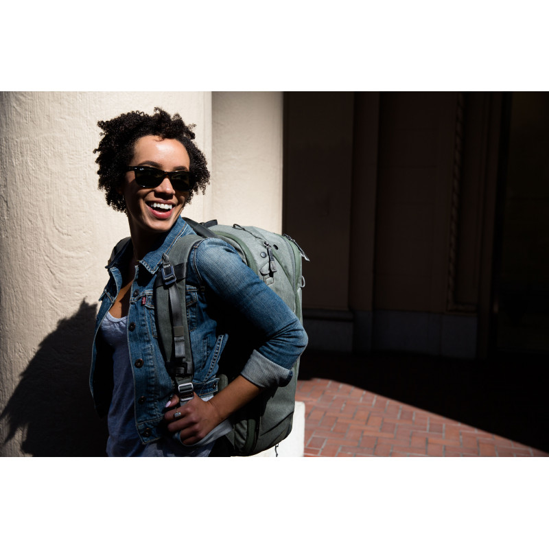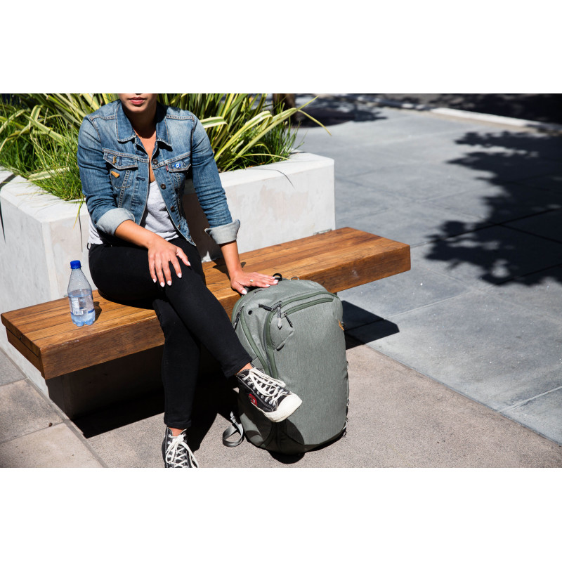 Approved for international carry-on, the bag includes a luggage pass-through for roller bag carry and a protected luggage tag holder. It is equipped with theft-deterrent zipper pulls and designed to fit Peak Design Packing and Camera Cubes (fit 3 units with space for more).
