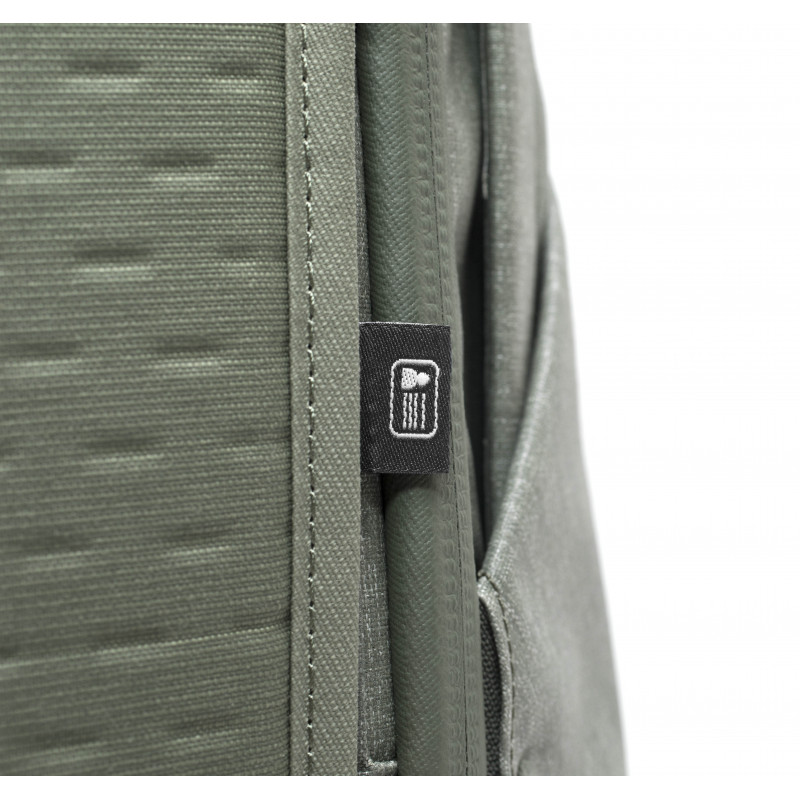 Constructed from a weatherproof, 100% recycled 400D nylon canvas shell with a rugged 900D waterproof bottom liner, the bag features ultralight padded foam for security and structure around the entire bag. The high-visibility grey interior makes it easy to find items inside. PFAS-free.