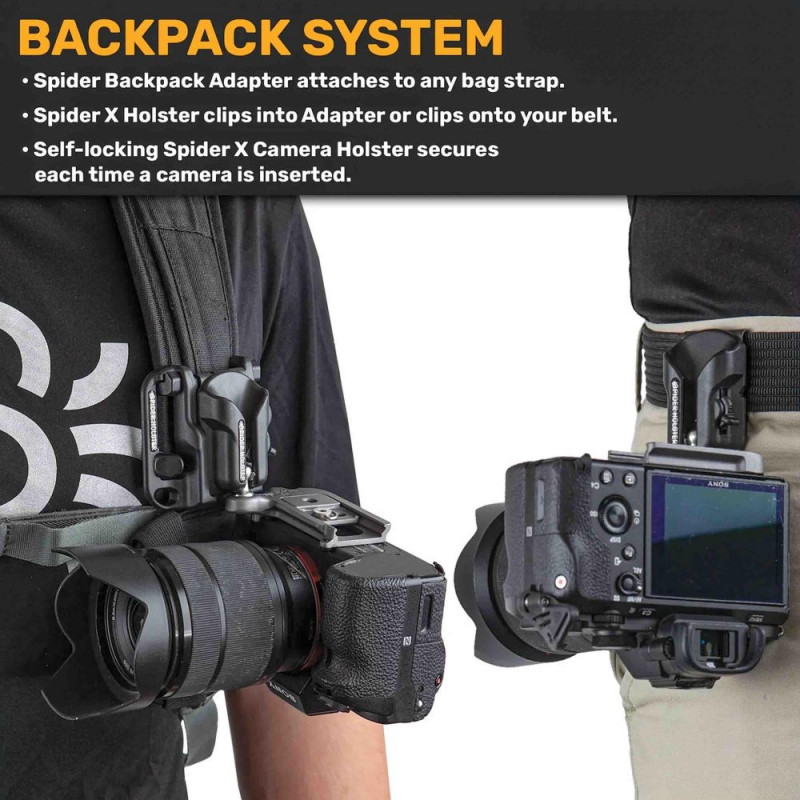 With the Spider X Holster, you can attach it to any belt or easily integrate it with the Spider Backpack Adapter. Switching between these setups takes just seconds!