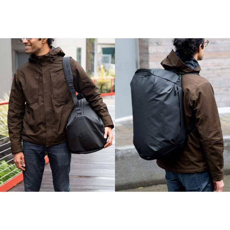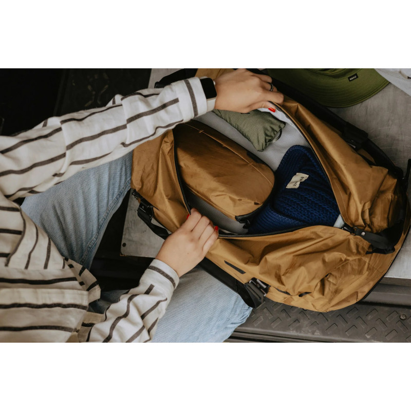 Both sizes work seamlessly with Peak Design Packing Cubes, Camera Cubes, and Pouches, sold separately. The 35L holds 3 units of Packing/Camera Cubes, the 65L holds 4 units, with tons of bonus space for additional storage.