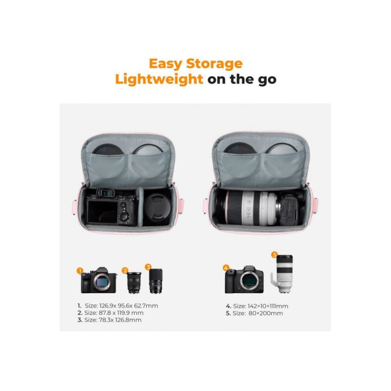Camera Bag - K&F Concept Sling Bag 5L Adjustable Strap Removable Compartment Pink