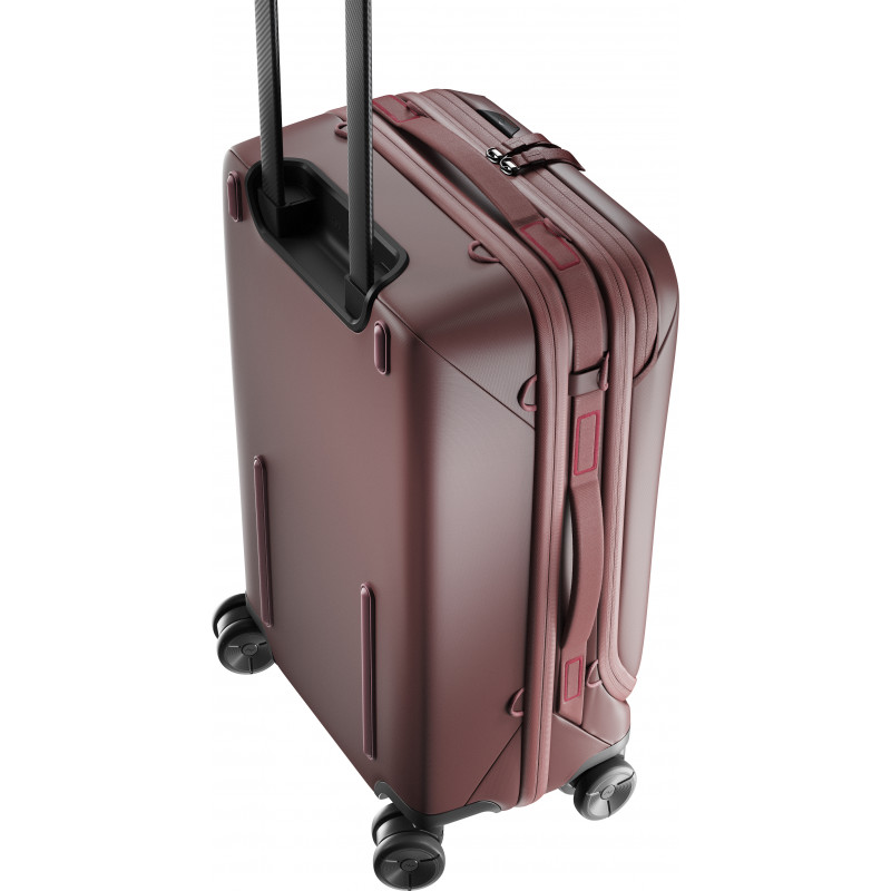 An exterior EDC pocket allows quick stowage/access for items like passports, glasses, and headphones in the security line and in-flight, and a protected laptop sleeve magnetically seals on its own to prevent accidental spillage. An external Cord Hook™ carry system allows you to lash items to the outside of the bag, giving you that critical extra hand when dashing through the terminal. Inside, a Cord Hook™ retention system keeps stuff secured faster and more elegantly than traditional compression straps. Brilliant details are everywhere: weatherproof UltraZips™ that all lock together*, a laser-cut Hypalon ID tag, padded grab handles, and secret AirTag and stash pockets.