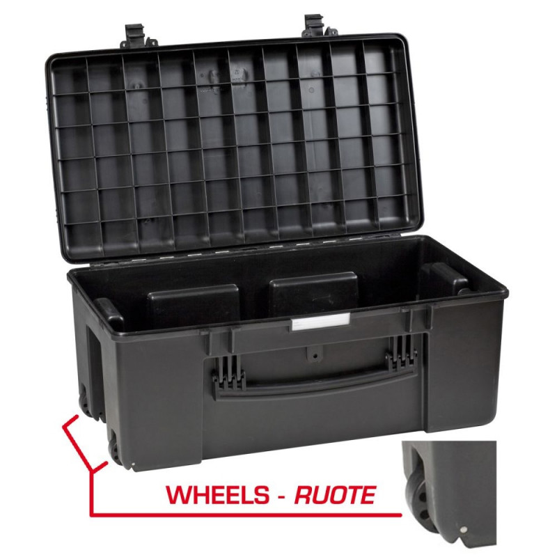 This box is suitable for use in situations where a high loading capacity is required. Think of use on construction sites or during maintenance. But this case is also very suitable for outdoor use and for transporting medical or nautical equipment. With the help of the wheels and extendable handle you can easily and safely take your belongings anywhere.