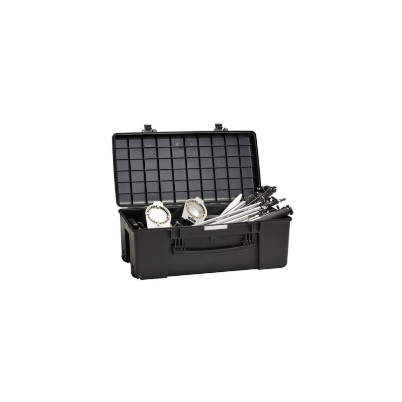 The MUB78 by the Italian Explorer Cases is a 78 cm long, waterproof multi utility box in the color black. The universal case is lightweight and features wheels and an extendable handle. The MUB78 has internal dimensions of 780 x 410 x 330 mm and is therefore an ideal tool for transporting or storing (valuable) equipment.