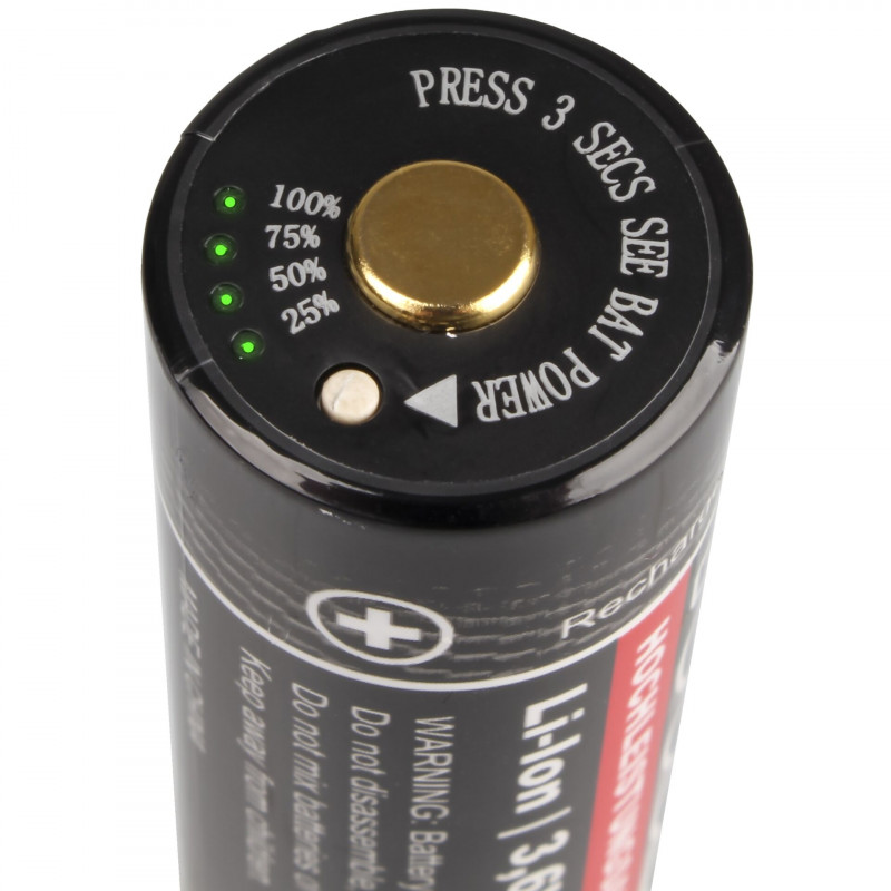 Powerful 18650 Li-Ion battery with protection circuit, power bank function, charge level indicator and a capacity of 3400mAh