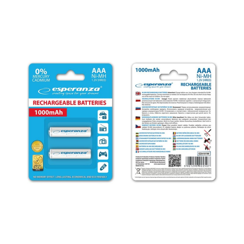 EZA101W Esperanza akumulatorki ni-mh aaa 1000mah 2szt. białe