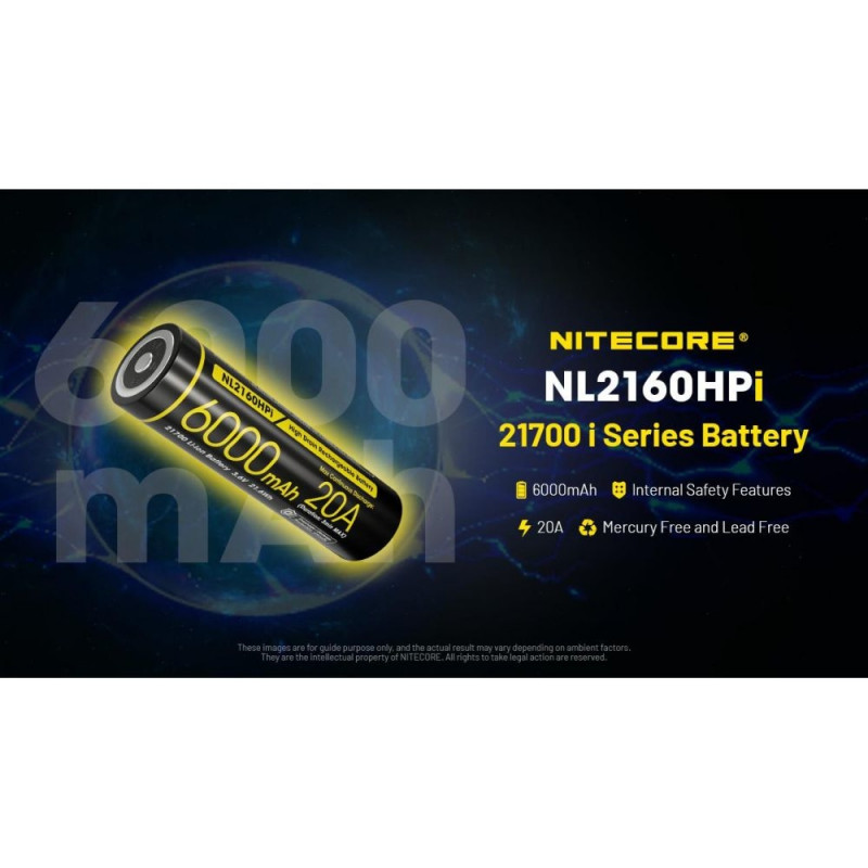 The Nitecore NL2160HPi is a high-capacity, high-discharge 21700 Li-ion rechargeable battery, specifically designed to power Nitecore's "i Series" flashlights and other high-drain devices. It's a crucial component for achieving the maximum performance (especially high lumen output) from compatible Nitecore products.