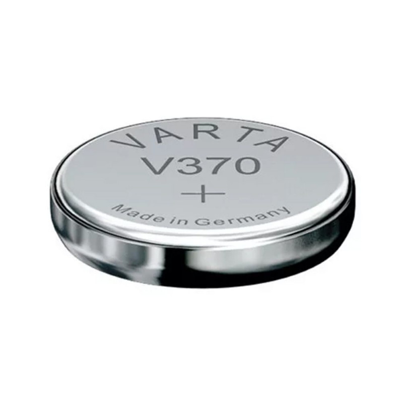 Varta V370 is a silver oxide battery designed for watches and small devices. It has a voltage of 1.55 V, a capacity of approximately 40 mAh, and dimensions of 9.5 mm.
