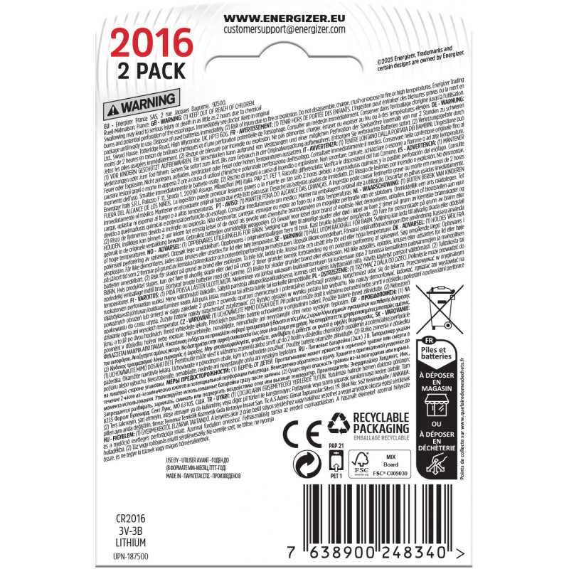 - Reliable: These Energizer CR2016 lithium batteries perform in extreme temperatures, withstanding -30º to 60º C
