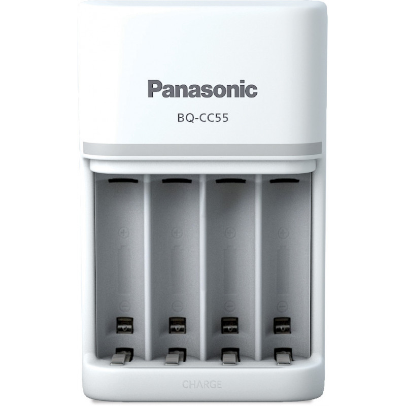 The BQ-CC55 charger charges both AA and AAA cells, and thanks to the different-colored LED indicators, you can see how much charge the batteries have. The charger can be used anywhere in the world (100-240 V input voltage) and is equipped with the Smart Charge smart charging function. With Smart Charging, the voltage is measured and the charging is stopped just before an overvoltage occurs, ensuring a longer battery life.