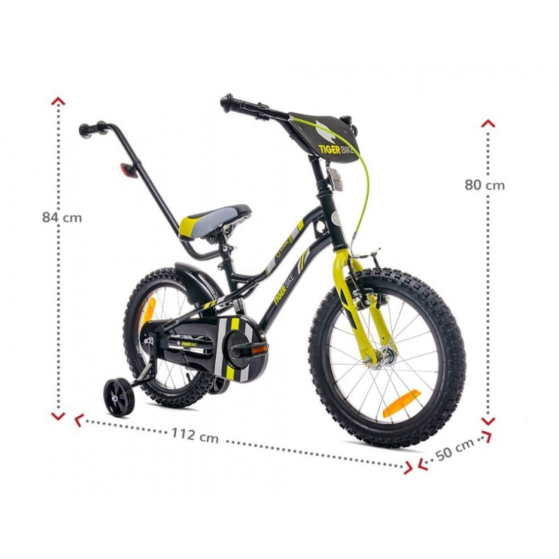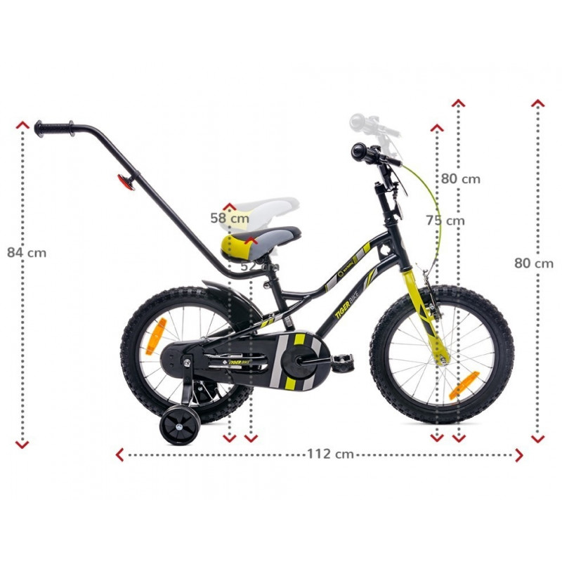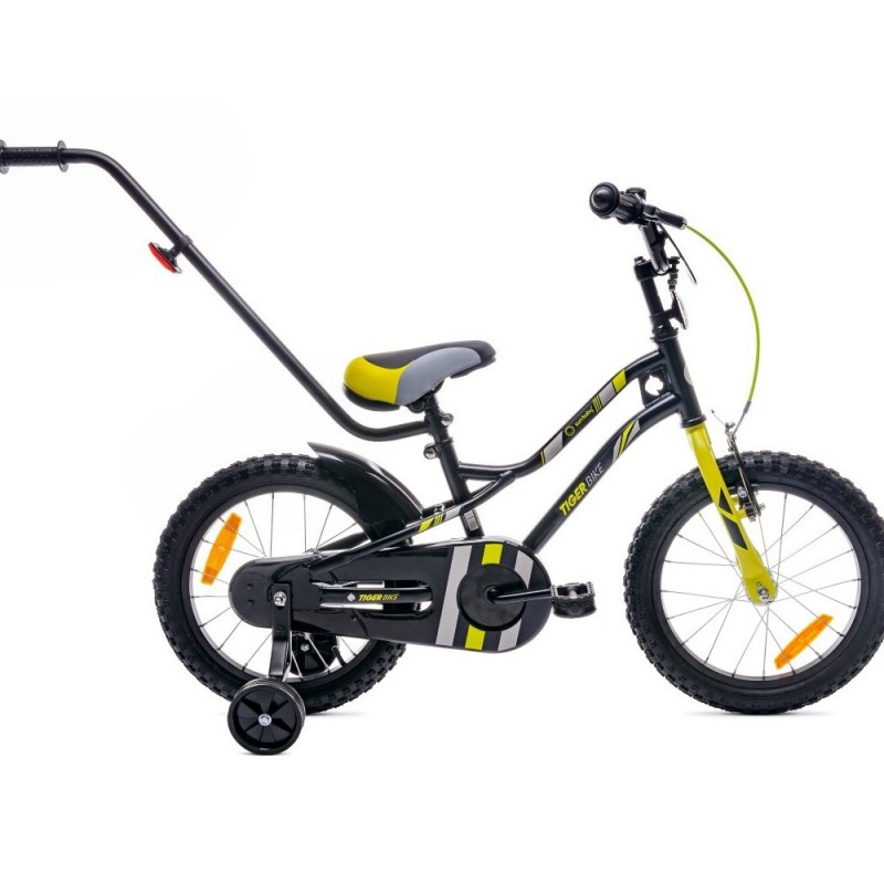 Rower 16 cali Tiger Bike z pchaczem - czarny & żołty & szary