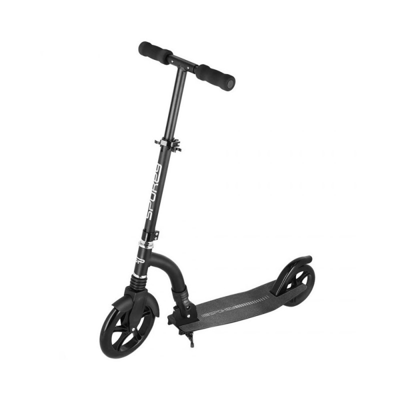Spokey Agent Scooter 200 mm black 929389 Properties: The Spokey scooter for children and adults is perfect for recreational, off-road or fast riding. The wheels are mounted on high-quality bearings. Additional shock absorber in the front. Foot brakeWarning: Last items in stock!
