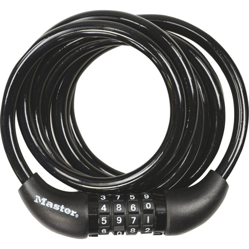 The Master Lock No. 8221EURDPRO Set-Your-Own Combination Cable Lock is 1,8cm long and features a 8mm diameter twisted steel for maximum strength and flexibility. The protective vinyl coating protects against scratches. The 4 dial combination security offers keyless convenience.