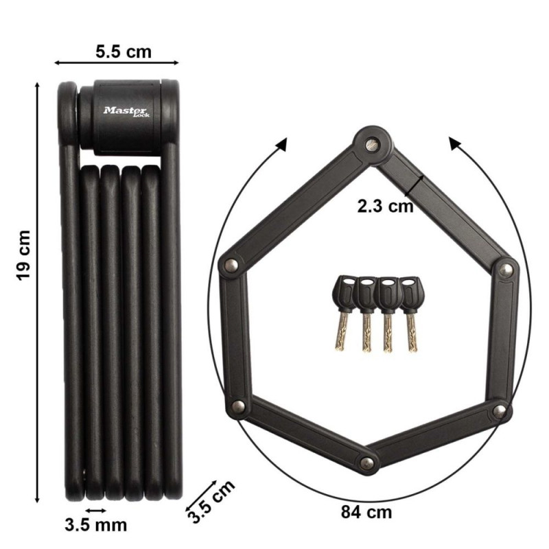 The Master Lock 8335EURDPRO folding lock is suitable for protecting road bikes, mountain bikes, folding bikes, e-bikes and more.