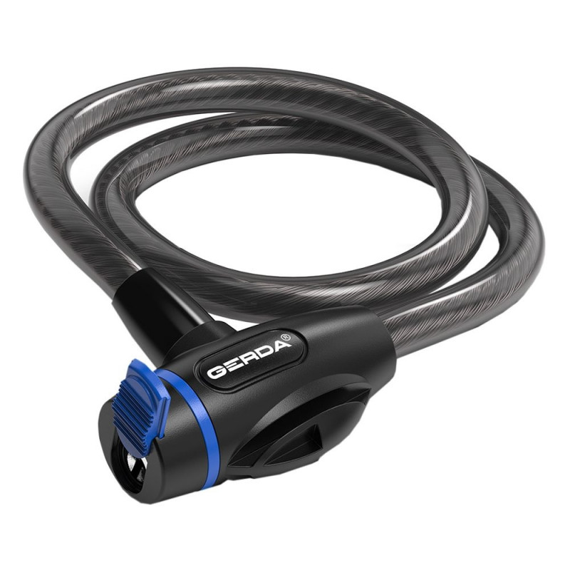 Zapięcie rowerowe typu linka Gerda pozwoli zminimalizować ryzyko kradzieży roweru. Poza tym będzie przydatne do zabezpieczenia innych sprzętów. Konstrukcja ze splecionych linek. Osłona PCV. Zamek Gerda zyskał przesuwaną zatyczkę otworu klucza.