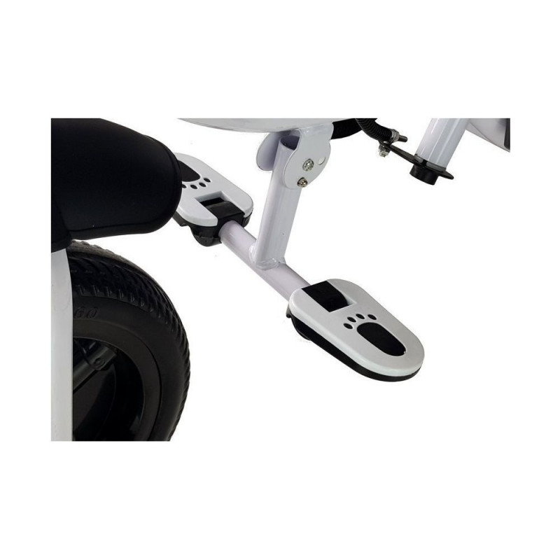 W konstrukcji rowerka znajduje się pojemny kosz na zakupy lub skarby dziecka, umieszczony pomiędzy tylnymi kołami, a także mała saszetka na suwak znajdująca się na prowadnicy dla rodziców ? detale te ułatwiają całodniowe przejażdżki i wycieczki. Dzięki miękkiej piankowej barierce Twoje dziecko będzie w pełni bezpieczne podczas spacerów i nie wypadnie z siodełka. Dodatkowo jest możliwość obrotu siedziska dziecka w swoja stronę i czuwania nad jego bezpieczeństwem. Na kierownicy znajduje się również dzwonek trąbka, którym Twoje dziecko śmiało będzie mogło komunikować innym o tym, że jedzie. Trójkołowy rowerek dla dzieci przeznaczony jest dla wszystkich maluszków od 6 do 60 miesiąca życia, których waga nie przekracza 25 kg. Wykonano go z trwałego i odpornego tworzywa, które gwarantuje długą żywotność i komfort użytkowania. Rowerek posiada miękkie koła EVA. Trójkołowiec dla dzieci zapakowany jest w oryginalny karton, wewnątrz którego znajdują się śrubki, narzędzia i instrukcja ułatwiająca samodzielny montaż.