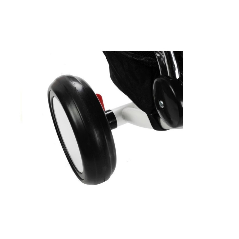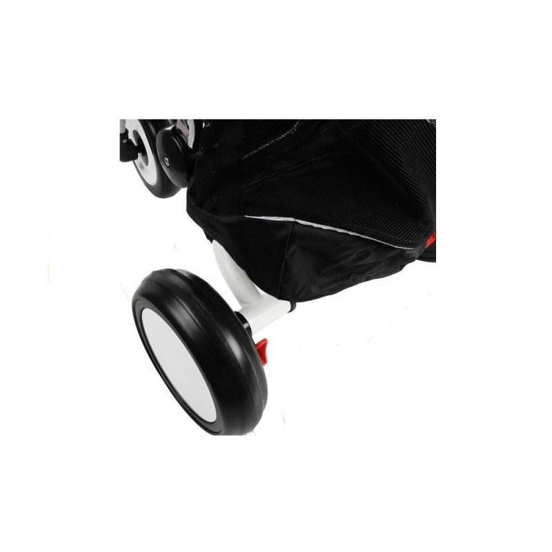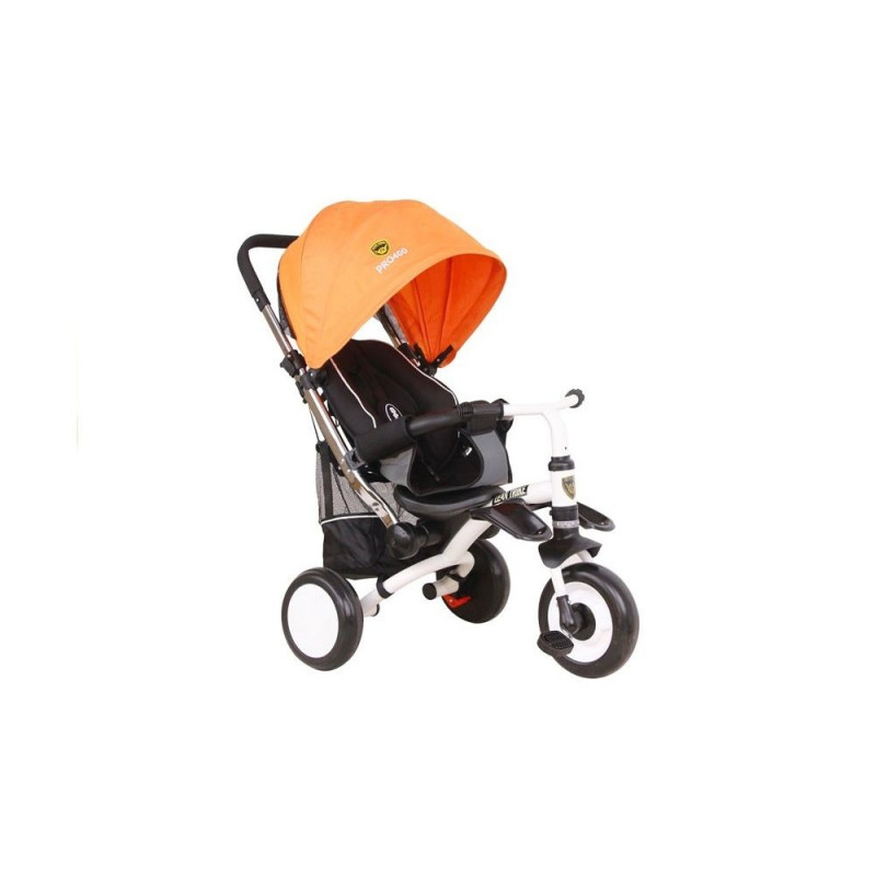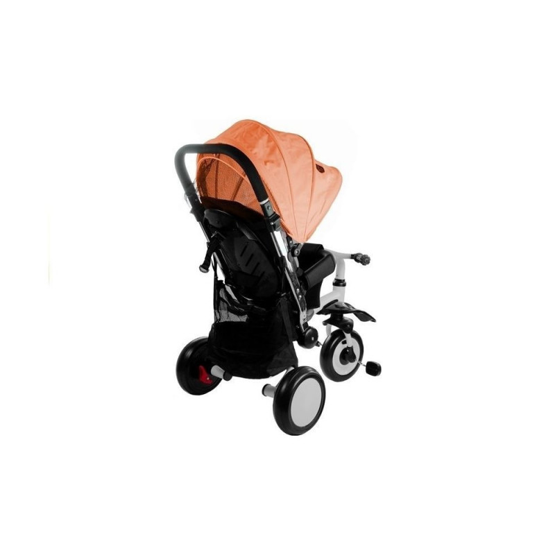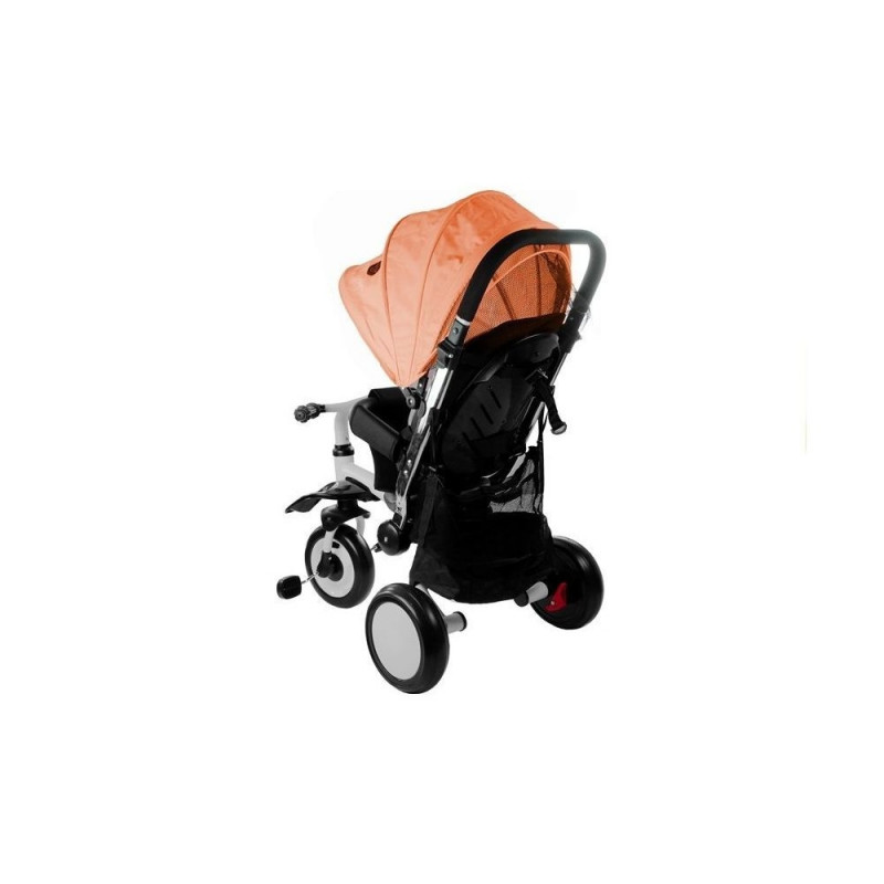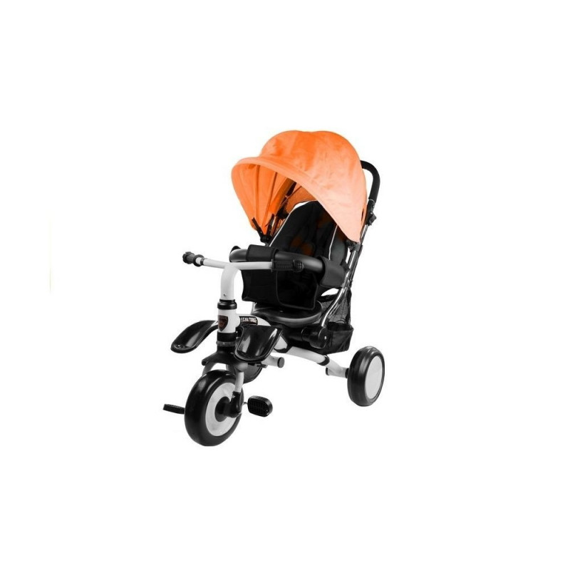 Rower Trójkołowy PRO400 PomarańczowyJeśli Twoje dziecko jest bardzo żywiołowe i aktywne, a Ty zastanawiasz się, w jaki sposób już od najmłodszych lat rozwijać w nim zamiłowanie do aktywnego spędzania wolnego czasu, mamy na to receptę. Prezentujemy dziecięcy rowerek trójkołowy PRO400, który będzie rosnąć razem z Twoją pociechą. Jesteśmy przekonani, że spełni Twoje wszystkie wymagania, równocześnie mając na szczególnej uwadze komfort i bezpieczeństwo dziecka. Pomarańczowy rower PRO400 został wyposażony w szereg udogodnień umożliwiających proste modyfikacje, które w dużym stopniu zmieniają rowerek.Prezentowany rower trójkołowy swą konstrukcją przypomina wózek typu spacerówka ? świadczy o tym rozkładany daszek z siatką czy w pełni regulowane oparcie pozwalające na ustawienie pozycji półleżącej, dzięki czemu potowarzyszy on Twojemu maluszkowi od pierwszych lat życia aż do czasu, gdy będzie mógł samodzielnie jeździć na dwukołowym rowerku. Pojazd dla maluchów w soczystym, pomarańczowym odcieniu oparty jest na trzech piankowych kołach, które posiadają wiele zalet ? są odporne na przebicia, a ich waga jest dużo niższa, niż w przypadku opon pompowanych.W konstrukcji dziecięcego, wielofunkcyjnego rowerka uwzględniono przypinany koszyk na zakupy lub skarby maleństwa, błotnik na przednim kole, rączkę z funkcją regulacji wysokości, a także pasy bezpieczeństwa na ramionka i dodatkowy pas ulokowany między nóżkami, utrzymujące dziecko w wygodnej pozycji, co równocześnie wpływa na zabezpieczenie przed wypadnięciem z siedziska rowerka.Uniwersalna forma pomarańczowego rowerka dla dzieci sprawia, że wraz z rozwojem umiejętności malucha, a także zmianą jego wzrostu, można odpinać poszczególne elementy, by zmienić jego układ. W jaki sposób to zrobić? W pierwszym etapie polecamy korzystanie ze wszystkich elementów konstrukcji wózeczka, natomiast wraz z upływem czasu można demontować wyściełane siedzisko, pasy bezpieczeństwa, boczne, piankowe belki czy daszek, a także przesuwać podnóżek do przodu, by ostatecznie odczepić go na rzecz pedałków.Wielofunkcyjny rowerek trójkołowy PRO400 przeznaczony jest dla wszystkich dzieci od 6 do 60 miesiąca życia, których waga nie przekracza 25 kg. Został on wyprodukowany z atestowanych materiałów najwyższej jakości, co jest gwarancją solidności, trwałości i długiej żywotności. Rower w słonecznym, pomarańczowym odcieniu oznakowano certyfikatem CE, będącym deklaracją producenta, iż produkt ten spełnia wszelkie wymagania dyrektyw ?Nowego Podejścia? Unii Europejskiej. Trójkołowiec dla malucha jest bezpiecznym rowerkiem, zapakowany go w oryginalny karton, wewnątrz którego znajduje się instrukcja ułatwiająca samodzielny montaż.Wymiary rozłożonego rowerka PRO400:- średnica kół: 23 cm,- szerokość kół: 7 cm,- rozstaw kół tylnych: 45 cm,- wysokość całkowita: 105 cm,- długość: 55 cm,- szerokość: 50 cm,- siedzisko: 25 cm x 23 cm,- wysokość oparcia: 40 cm,- odległość od środka siedziska do pedałów: 40 cm,- szerokość kierownicy: 40 cm.