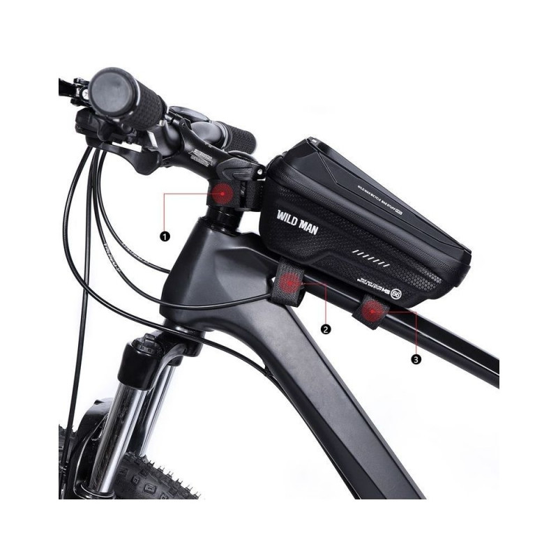 WILDMAN MS66 frame bag is a practical bag with space for a smartphone, ideal for mounting on the top of the frame. Provides quick access to the phone and the most necessary things while riding - without having to stop.