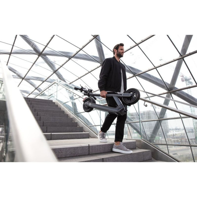 The hydraulic disc brakes ensure reliable braking performance at any speed. The 10-inch pneumatic tires compensate for uneven surfaces and offer you a smooth riding experience. With the height-adjustable handlebars, you can customize the scooter to your height - for rides without compromise.