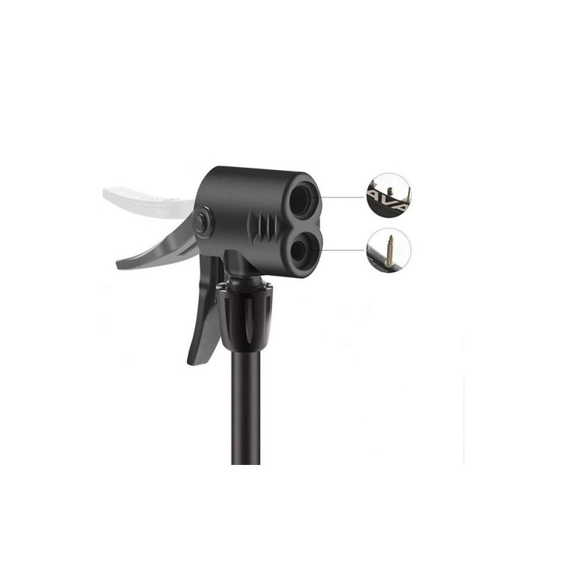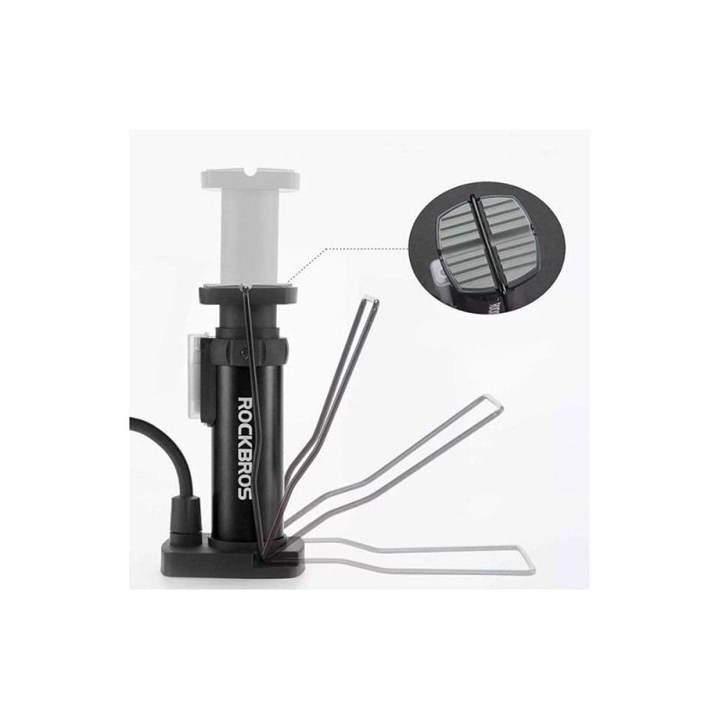 The Rockbros bicycle floor pump features a built-in pressure gauge and a maximum operating pressure of 7 bar. Made from nylon and aluminum, it is designed for inflating various inflatables.