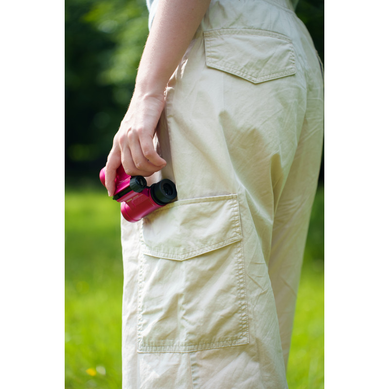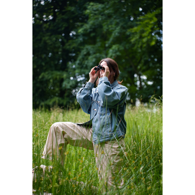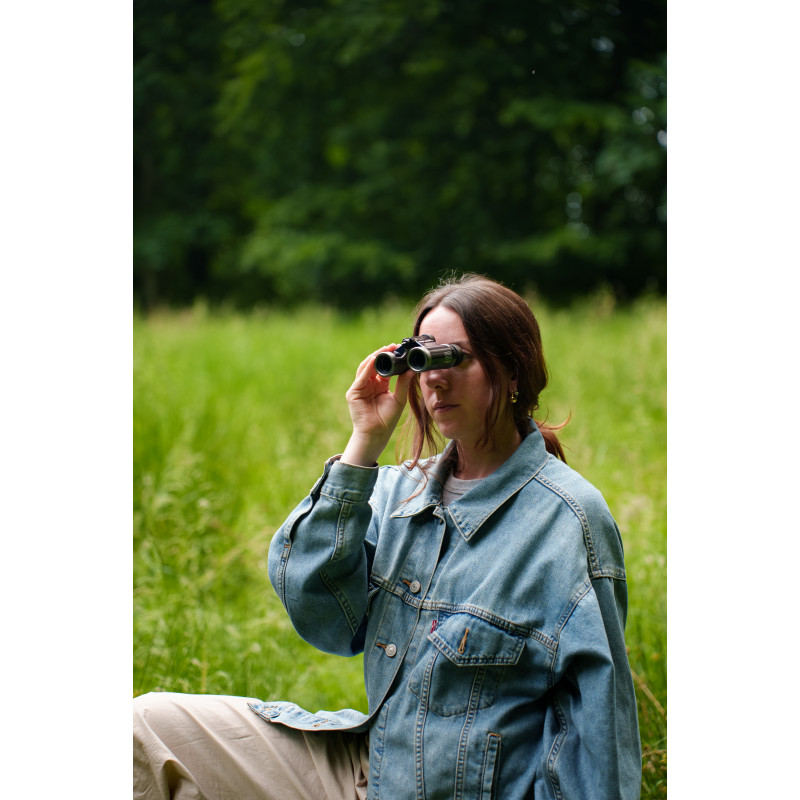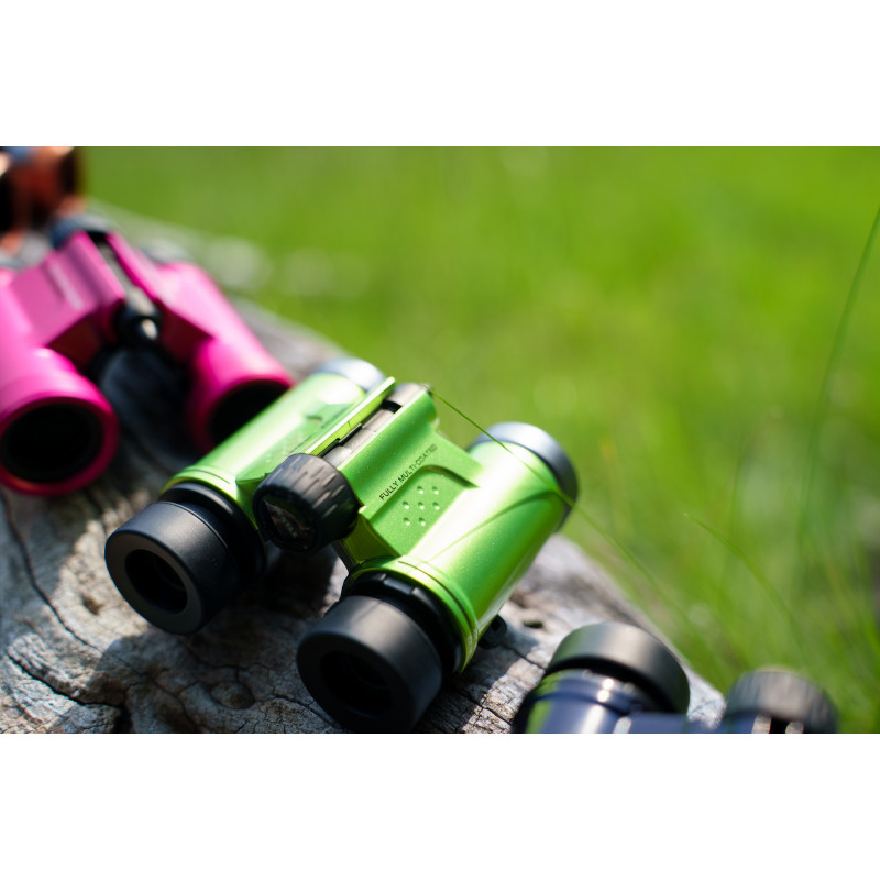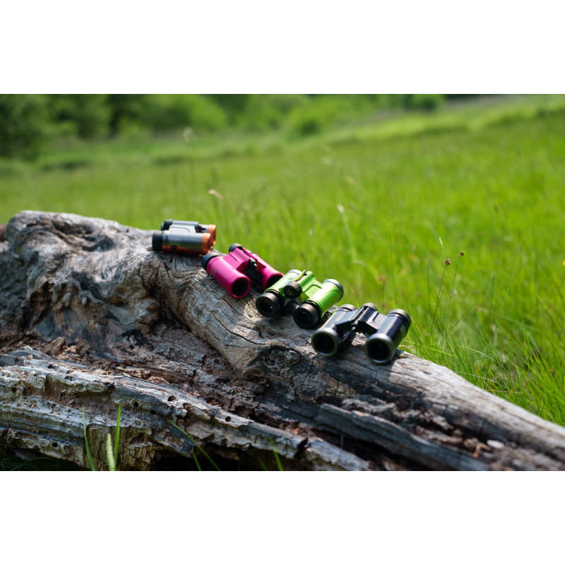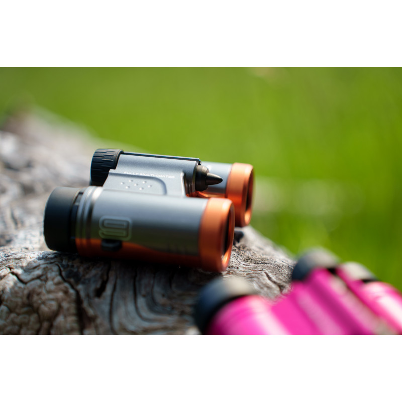 - Compact binoculars with 9× magnification and 21 mm lenses