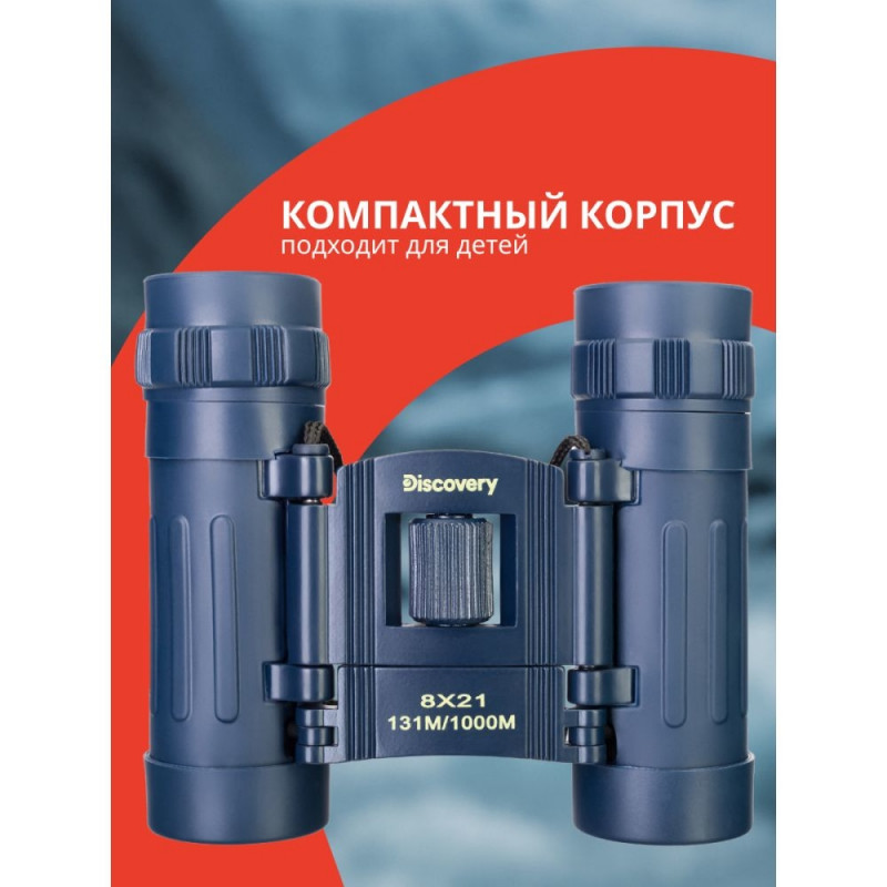 The Discovery Basics BB 8x21 are compact roof binoculars that can travel with you everywhere you go. It is so small that it easily fits in a pocket or a bag compartment. However, the delivered picture is crisp and clear, and the world around you can be viewed at the magnification of 8x. No need for a tripod: when handheld, the image is completely stable.