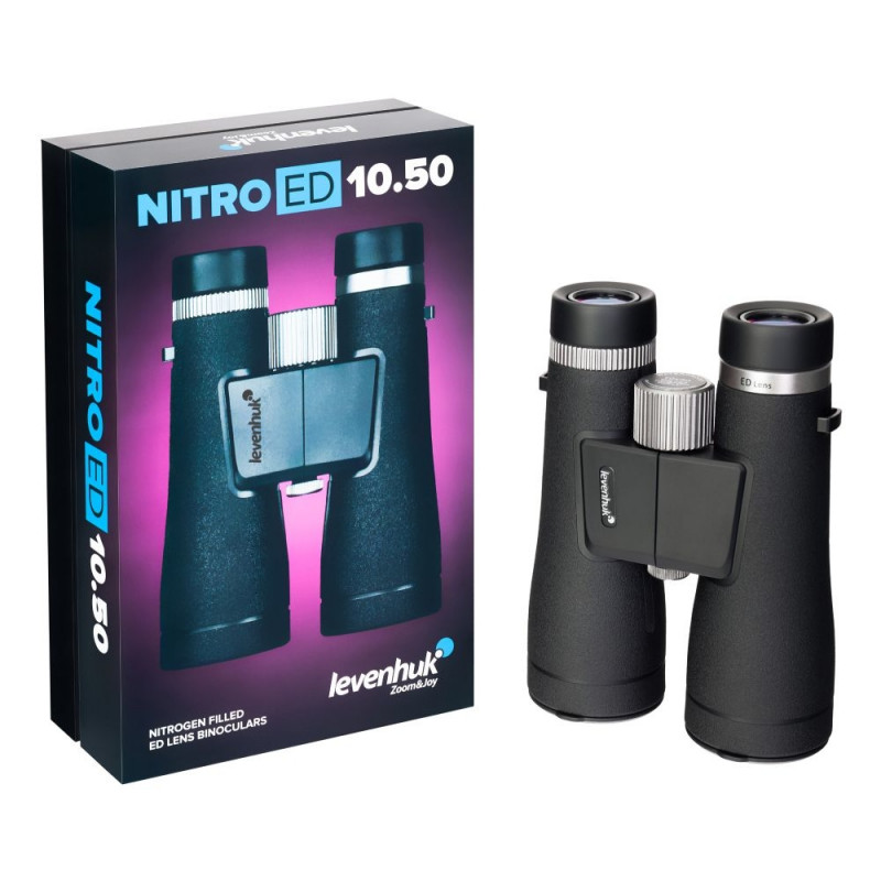 The Levenhuk Nitro ED 10x50 is a pair of binoculars that will impress you with their clear and sharp images throughout the entire field of view. They use extra-low dispersion ED optics that produces high-resolution images without color distortion – the contours of objects are sharp and fine details are well-defined. The binoculars are also filled with nitrogen – a safe, colorless gas that prevents the lenses from fogging up and water penetration. The Levenhuk Nitro ED 10x50 is a great choice for any outdoor adventure in all weather conditions!