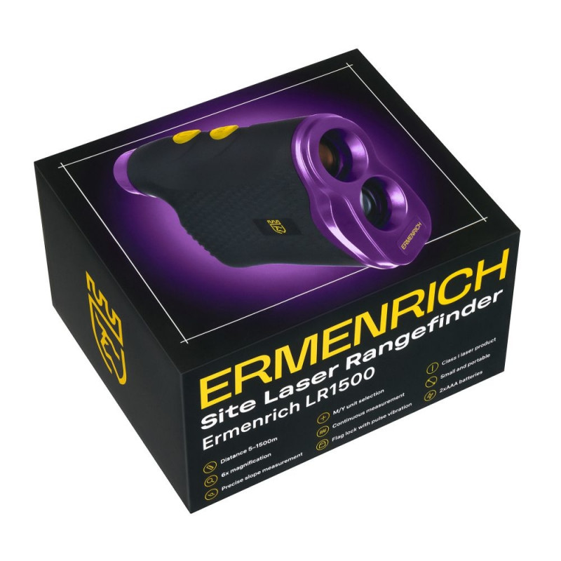 The Ermenrich LR1500 laser rangefinder is designed for measuring the distance to an object over a very long distance up to 1500m (4920ft). Three parameters can be measured: distance, angle, and speed. It is also possible to observe at 6x magnification by using the instrument as a standard monocular. The high measurement accuracy of the rangefinder enables it to be applied in a variety of situations – on large construction sites, when camping to find landmarks, when hunting to track down game, etc.