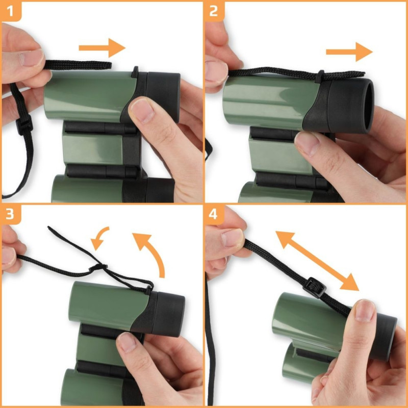 The low weight and rubberized surface make the binoculars particularly comfortable to hold. The lenses can be adjusted so that they remain comfortable even during prolonged use. The carrying strap means you always have them to hand - whether you're playing or learning.