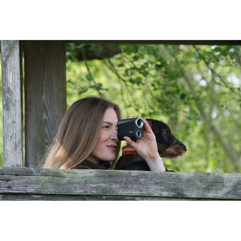 The measurement result is clearly recognisable in the field of vision, even on a dark background, by means of a red OLED display. However, the 6x magnifying optics also allow you to simply observe, so that additional binoculars are often of minor importance.