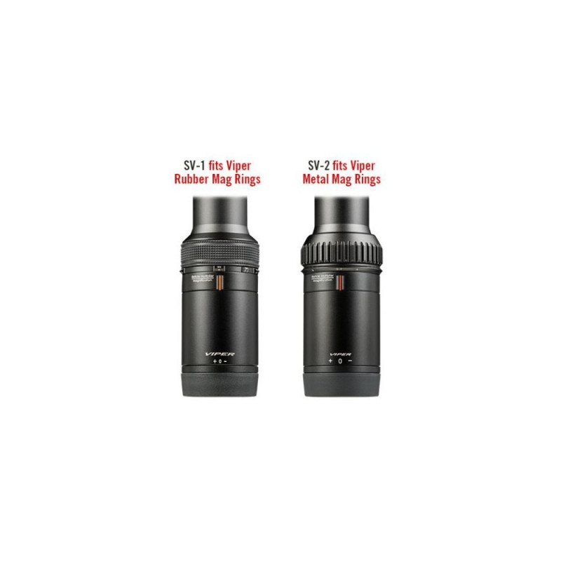 Attaching the Switchview is quick and simple, so you can enjoy a smooth transition between different magnifications right away. The Switchview SV-2 fits perfectly on Razor HD riflescopes with a rubber magnification ring and Viper scope series such as PST Gen I, HS-T, HS LR, and HS series, all equipped with a metal magnification ring.