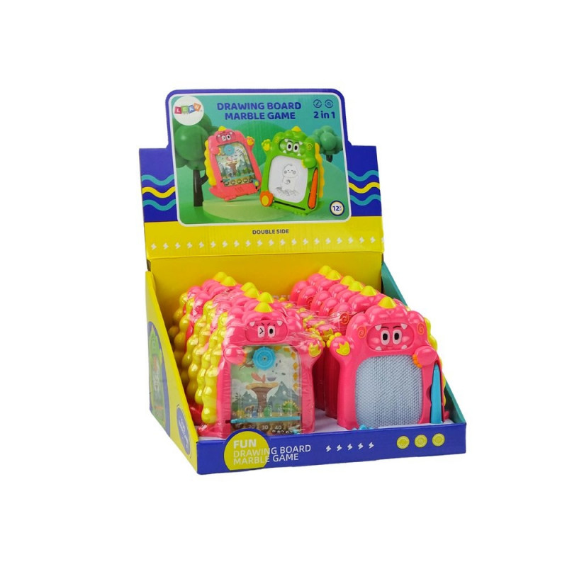 Dwustronna tablica gra kieszonkowa w kształcie różowego dinozaura to idealna zabawka, która łączy kreatywność z zabawą zręcznościową. Z jednej strony tablica służy do rysowania i działa na zasadzie znikopisu. Do zestawu dołączony jest specjalny długopis, którym maluch może rysować różne wzory i kształty. Gdy rysunek jest gotowy, wystarczy przesunąć suwak na dole tablicy, aby całkowicie go zmazać i zacząć tworzyć od nowa. Ta funkcjonalność pozwala dzieciom na nieograniczoną twórczość i rozwijanie umiejętności plastycznych bez użycia papieru i kredek.